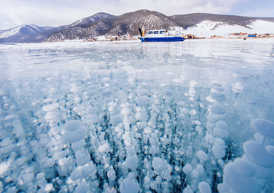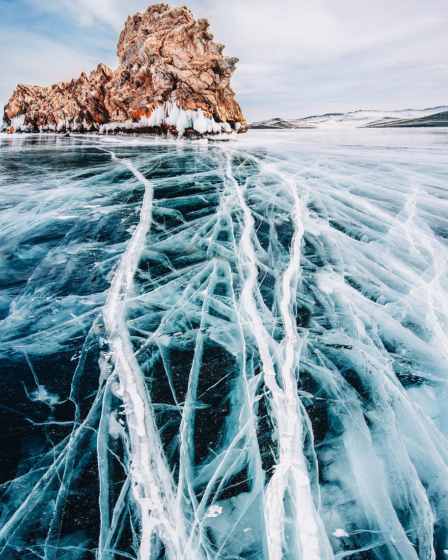 Baikāla ezera garums ir apmēram 600 kilometri. Ledus biezums var sasniegt pat divus metrus un tas spēj izturēt transportlīdzekli līdz gandrīz 15 tonnām, taču tas nav rādītājs, jo, kā raksta Kristīna, apkārt redzamas automašīnas, kuras ledus tomēr nav spējis noturēt. Ledum šajā ezerā ir vairāki slāņi dažādās ezera vietās, un tas ir tādēļ, ka ūdens tajā sasalst kārtās, nevis kā viens veselums. Bieži vien zem vienas ledus kārtas var saskatīt ūdeni, iesalušas zivis vai augus, taču nākamā kārta atkal ir ledus.