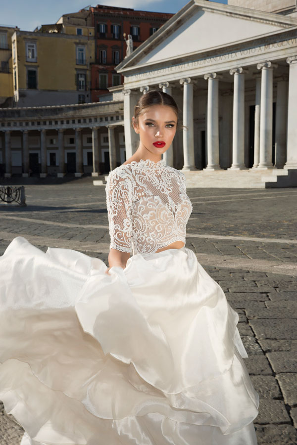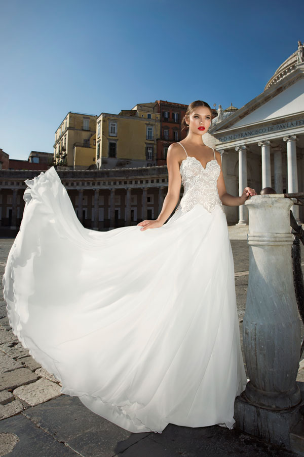 Tērpos savīta visa maģiskā Itālijas noskaņa – daļējs, bet reizē milzīgs tills, ar rokām darinātas delikātas un izsmalcinātas mežģīnes un neskaitāmas satriecošas detaļas, kas tērpu padara par katras līgavas sapni un meistardarbu modes pasaulē.