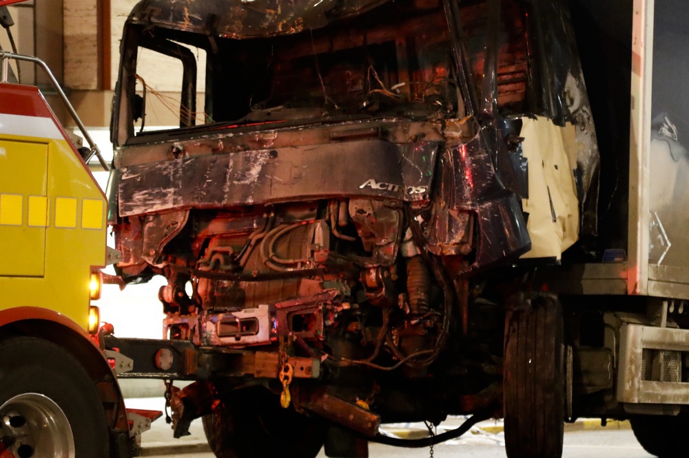 Es nobildēju tas kravas mašīnas priekšējo daļu, kas kā gaļasmašīna bija pārklāta sarkanu asinīm pilošu masu