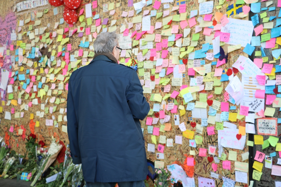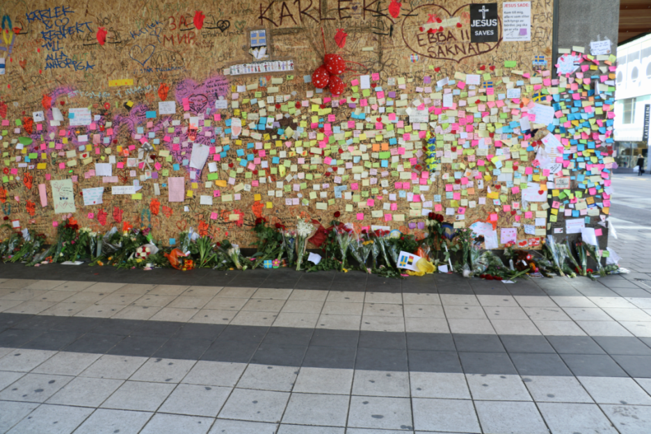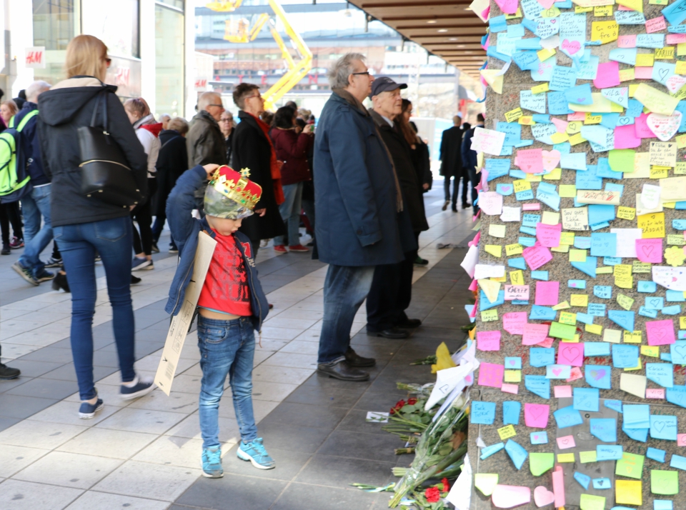 Šobrīd Stokholmas centrā esošajā Drottninggatan ielā jeb Karalienes ielā atkal kūsā jautrība un dzīvība. Vienīgi daudzās krāsainās lapiņas, rotaļlietas, ziedi un svecītes atgādina par to traģēdiju, kas te risinājās pirms divdesmit dienām. Esot klātienē notikuma vietā rodas iespaids, ka lūkojos uz sava veida altāri ar daudziem pozitīviem laba vēlējumiem. Realitātē nekā pozitīva šeit nav. Zviedriem šī vienmēr būs vieta, kur brutāli zem smagas mašīnas riteņiem, saberžot cilvēkus kā gaļas mašīnā, tika nogalināti četri cilvēki un sakropļoti 15. “Tie nav tikai fakti un statistikas skaitļi, bet šausminošs emocionāls pārdzīvojums visiem zviedriem”, sarunā ar ritakafija.lv atzīst dziedātāja Katy Tindemark, kas terorakta brīdī atradās netālu esošajā ģimnāzijā.
