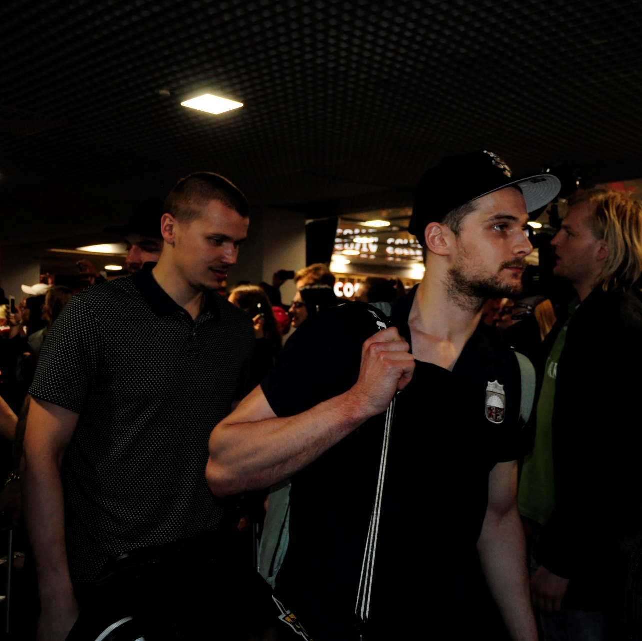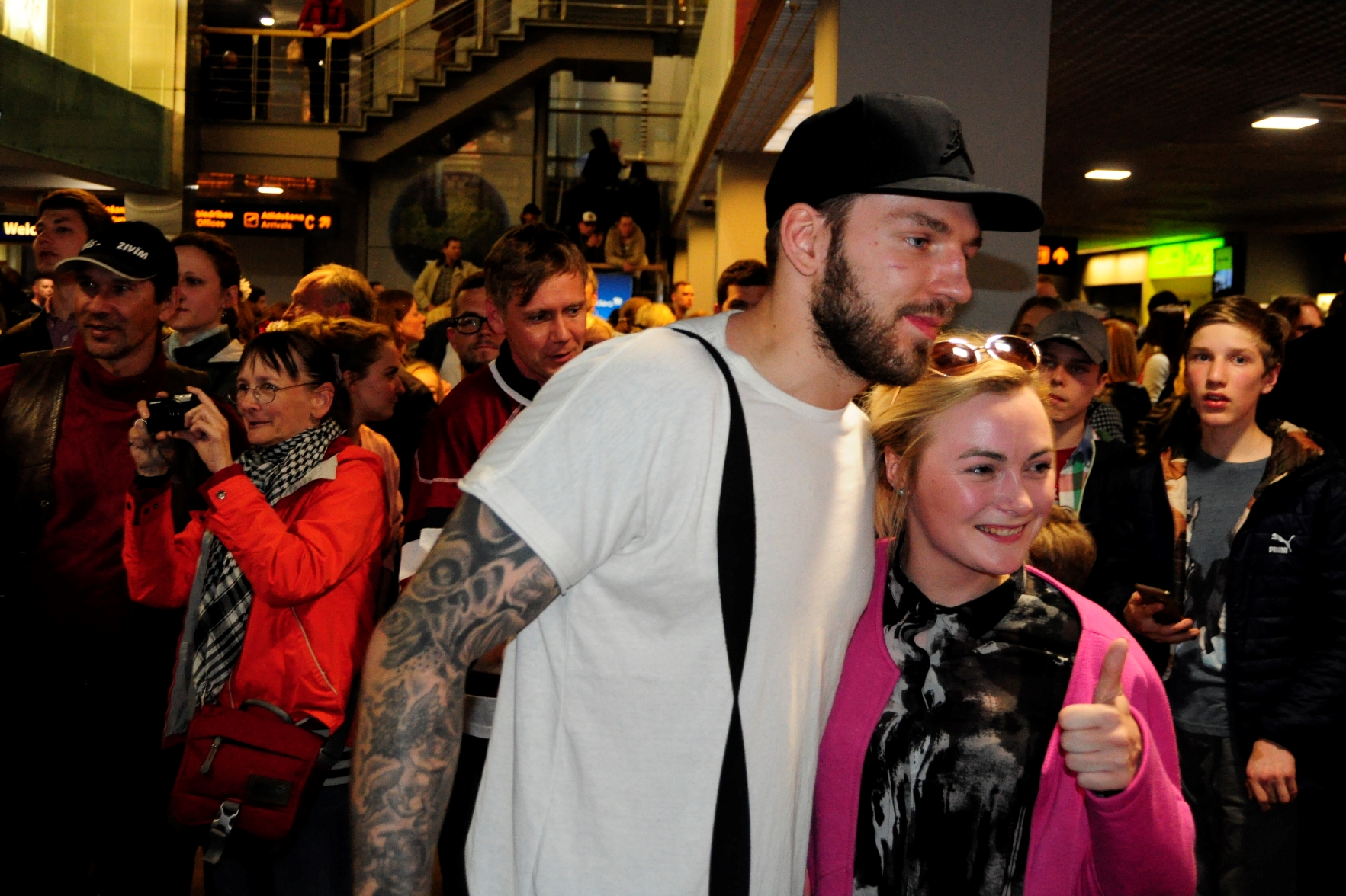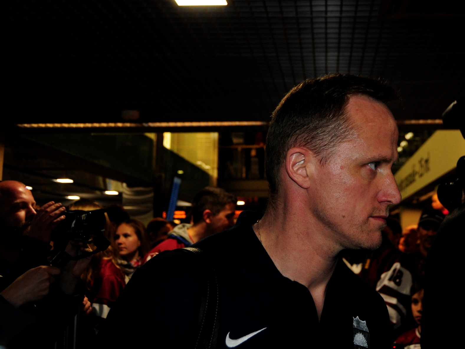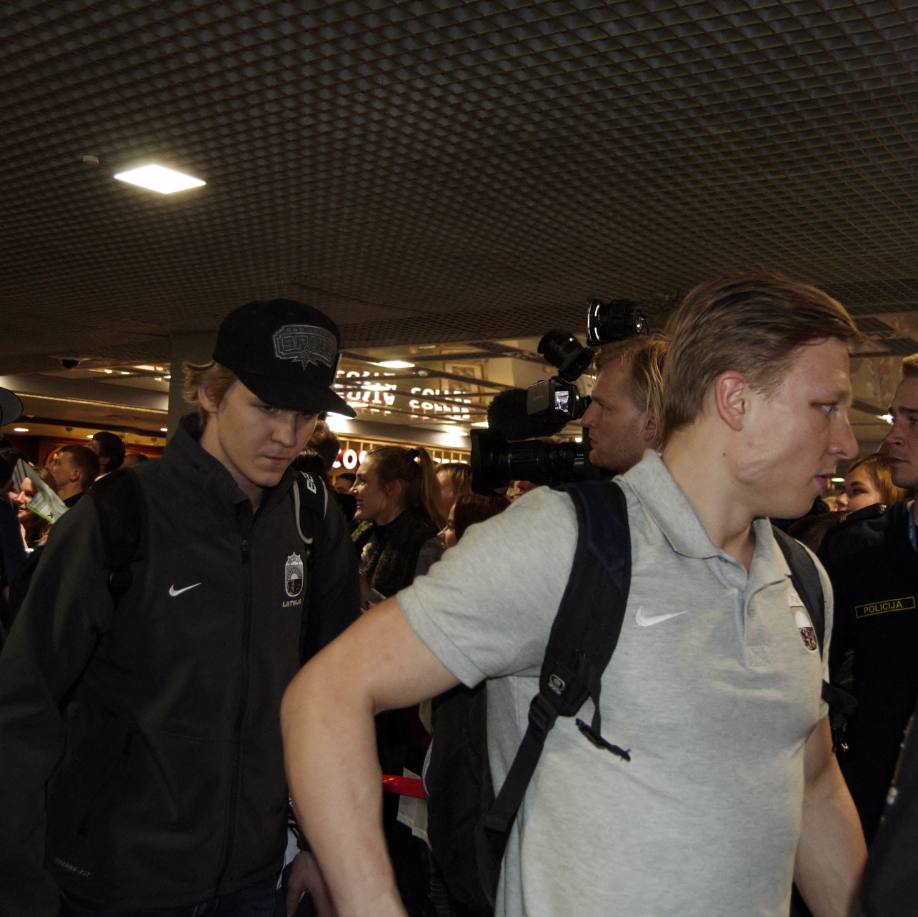 Neskatoties uz sāpīgo neveiksmi, mūsu hokejistus lidostā sagaidīja pāris simti līdzjutēju, no kuriem liela daļa bija tērpusies izlases formas kreklos. Pirms hokejistu parādīšanās pie mikrofona iekārtojās aktieris Gints Andžāns, kurš pārējo fanu atbalstīts sāka dziedāt “Jā, mēs esam un būsim labākie”. Šo muzikālo priekšnesumu dzirdēja tikai komandas kapteinis Kaspars Daugaviņš, kurš no ielidošanas termināla iznāca pirmais. Siltā sagaidīšana sportistiem lika atplaukt smaidā un uzkavēties lidostā, lai iemūžinātos ar faniem un aprunātos ar presi. Zemgusa Girgensona seju rotāja svaigas rētas, bet pat tas nebija šķērslis iepozēt ar faniem. “Tuvākās dienas nedarīšu neko. Vienkārši atpūtīšos un tad jau jāsāk gatavoties lidot atpakaļ uz Ameriku,” savus tuvākos plānus sarunā ar ritakafiju.lv atklāj Girgensons. Šī čempionāta publikas mīlulis nenoliedzami ir vārtsargs Elvis Merzļikins. “Šī komanda bija saliedēta, mēs bijām kā ģimene. Tas ir svarīgākais – justies kā vienotai komandai un kopā ir krietni vieglāk paveikt sev uzticētos uzdevumus. Viens otram uzticējāmies, kopā priecājāmies un skumām. Īstenībā, tas ir liels trenera nopelns. Man ļoti patika strādāt ar Hārliju. Noteikti spēlētu jebkur, kur viņš mani aicinātu,” par pasaules čempionātu savās pārdomās dalās Merzļikins. Atgriežoties mājās sporta soma uz pāris nedēļām tiks nolikta malā un puisis baudīs atpūtu neko nedarot. “Īstenībā gribās vienkārši ar plikām kājām iekāpt smiltīs un baudīt vasaru. Sporta soma būs pagrabā vismaz pusotru mēnesi,” smaidot savus plānus atklāj Merzļikins.