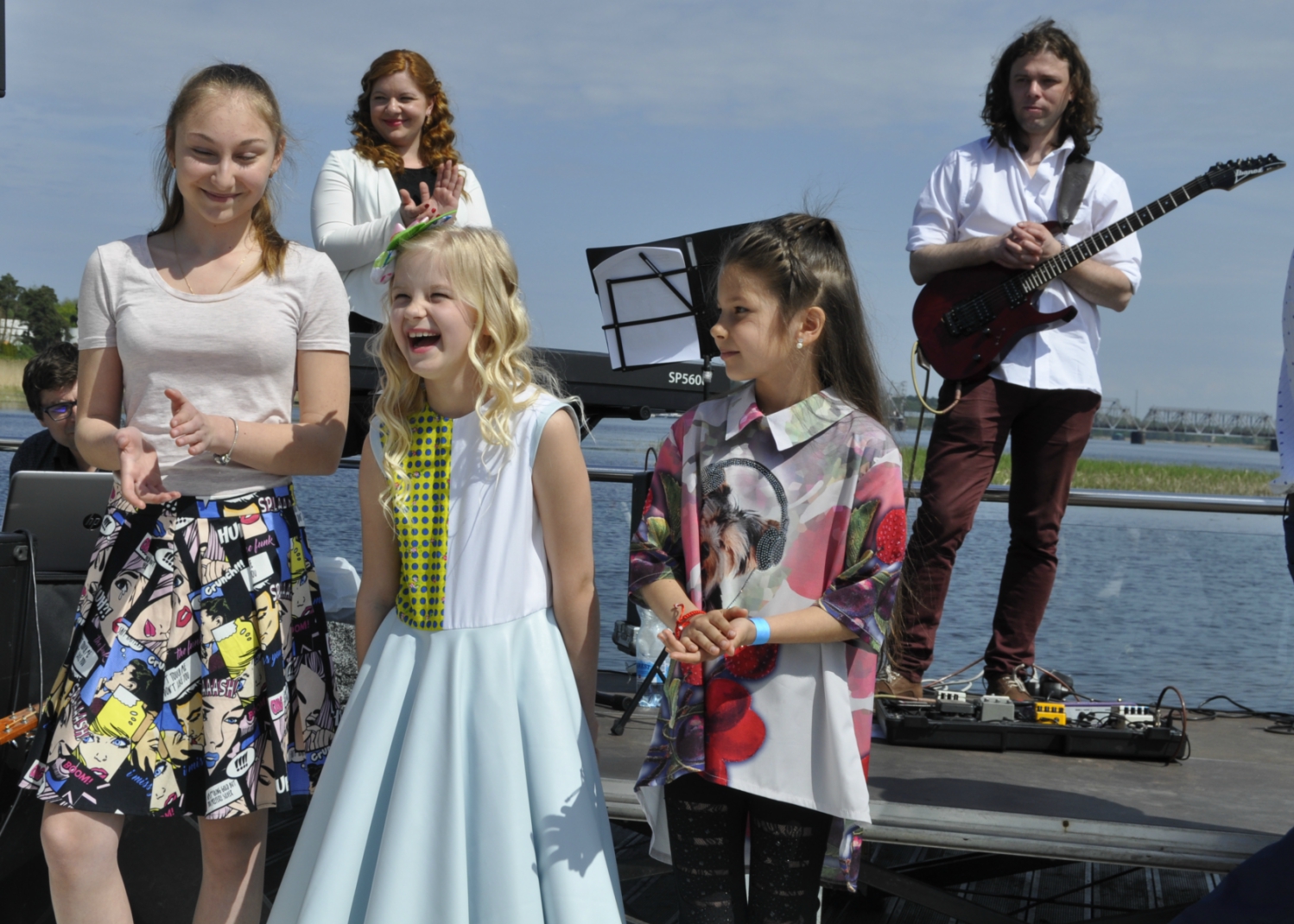 - Kerija kopā ar mammu Katrīni un žūrijas pārstāvi mūziķi Andri Ābelīti.