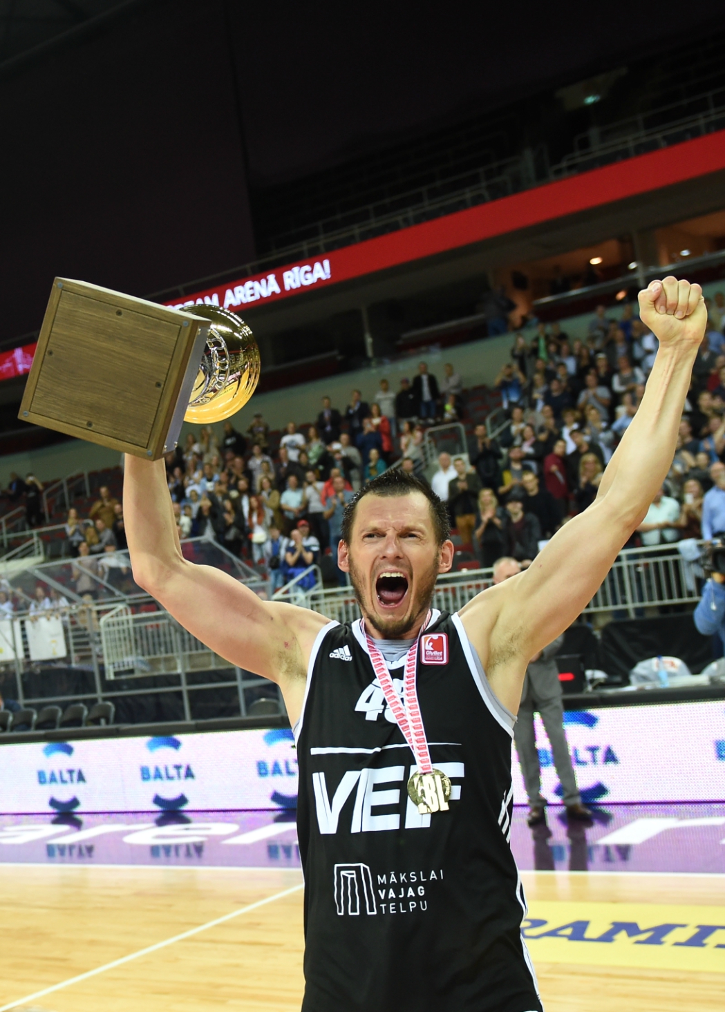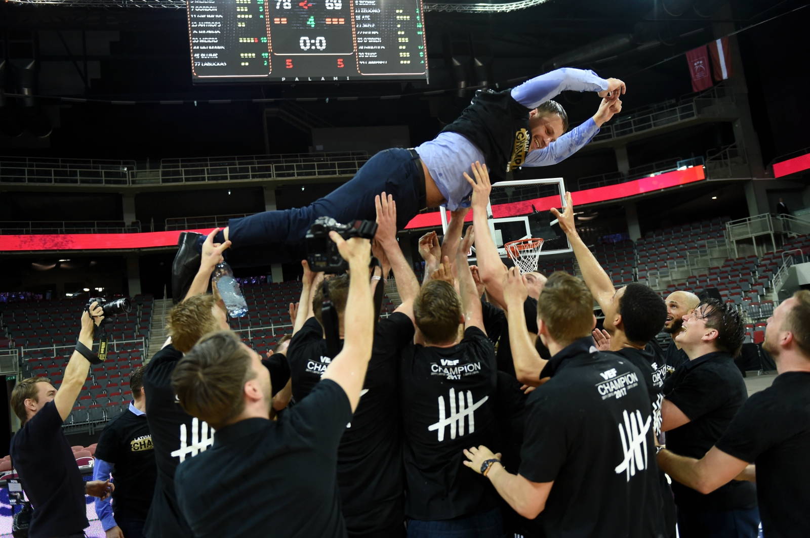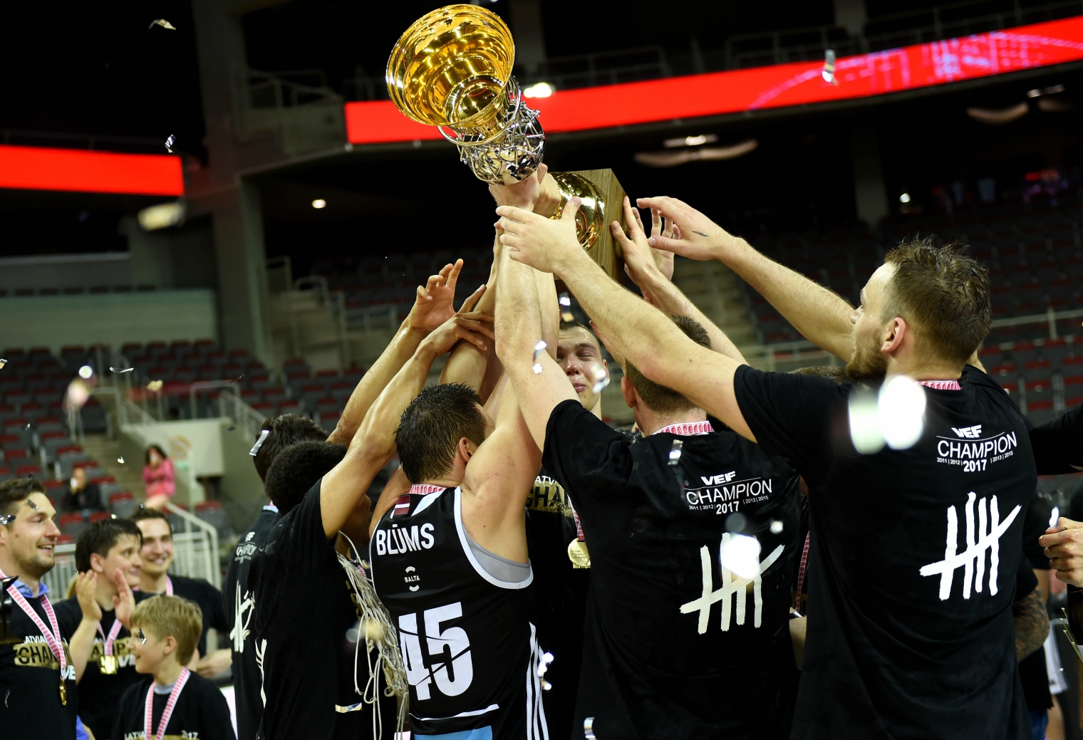 “VEF Rīga” komanda ceturtdien savā laukumā “OlyBet” Latvijas Basketbola līgas (LBL) finālsērijas ceturtajā mačā sīvā cīņā uzvarēja “Ventspils” basketbolistus, piekto reizi kluba vēsturē tiekot pie Latvijas čempionu titula.Par Latvijas čempioniem “VEF Rīga” kļuva arī laika posmā no 2011. līdz 2013.gadam, kā arī 2015.gadā, savukārt pērn finālā dramatiskā cīņā cieta neveiksmi. Savukārt “Ventspils” komanda, kura ir deviņkārtēja Latvijas čempione, finālā zaudēja septīto reizi, piedevām pēdējās četras neveiksmes ir bijušas tieši pret “vefiņu”.
