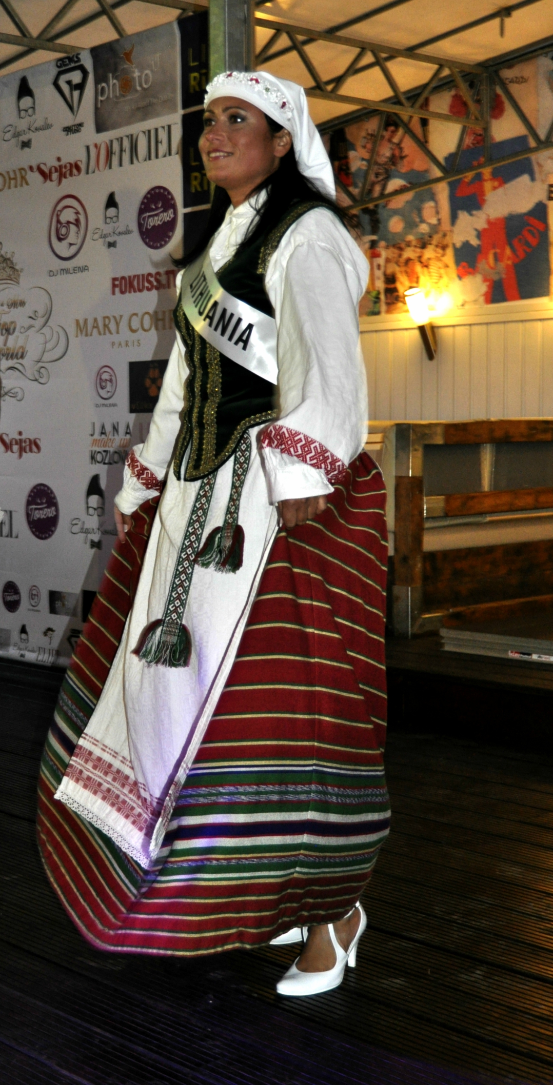 - 6. Mūsu tuvākas kaimiņzemes Lietuvas pārstāve Vilma Stepsiene lieliski parādīja lietuviešu tautas tērpa galvenās iezīmes, kas figurē tieši precētu dāmu tērpos. Tostarp, kā galvasrotu izmantot savām vecumam atbilstošo aubi.