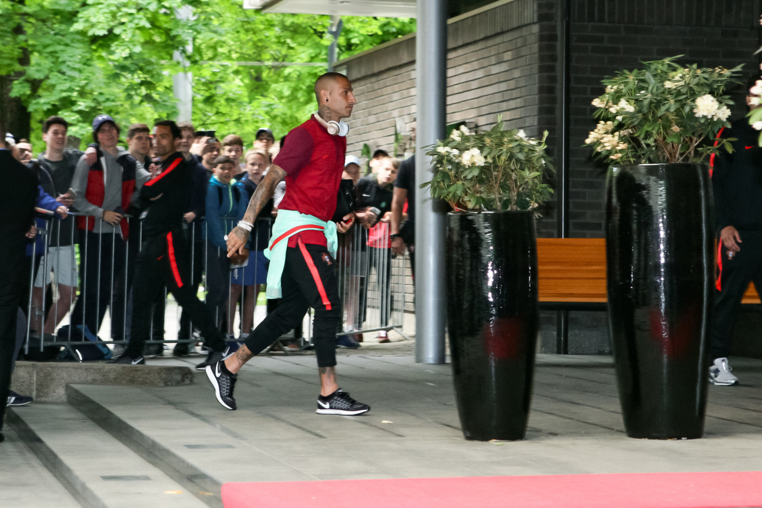 Šodien portugāļi beidzot pameta savu cietoksni “Radisson Blu Rīdzene” un devās nelielā pastaigā pa Rīgas ielām. Precīzāk, apgāja apli ap viesnīcu. Taču ar to pietika, lai iepriecinātu daudzos fanus un autogrāfu medniekus.