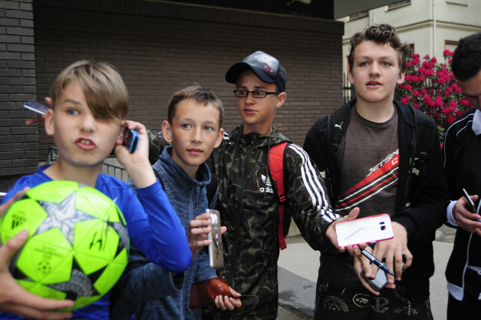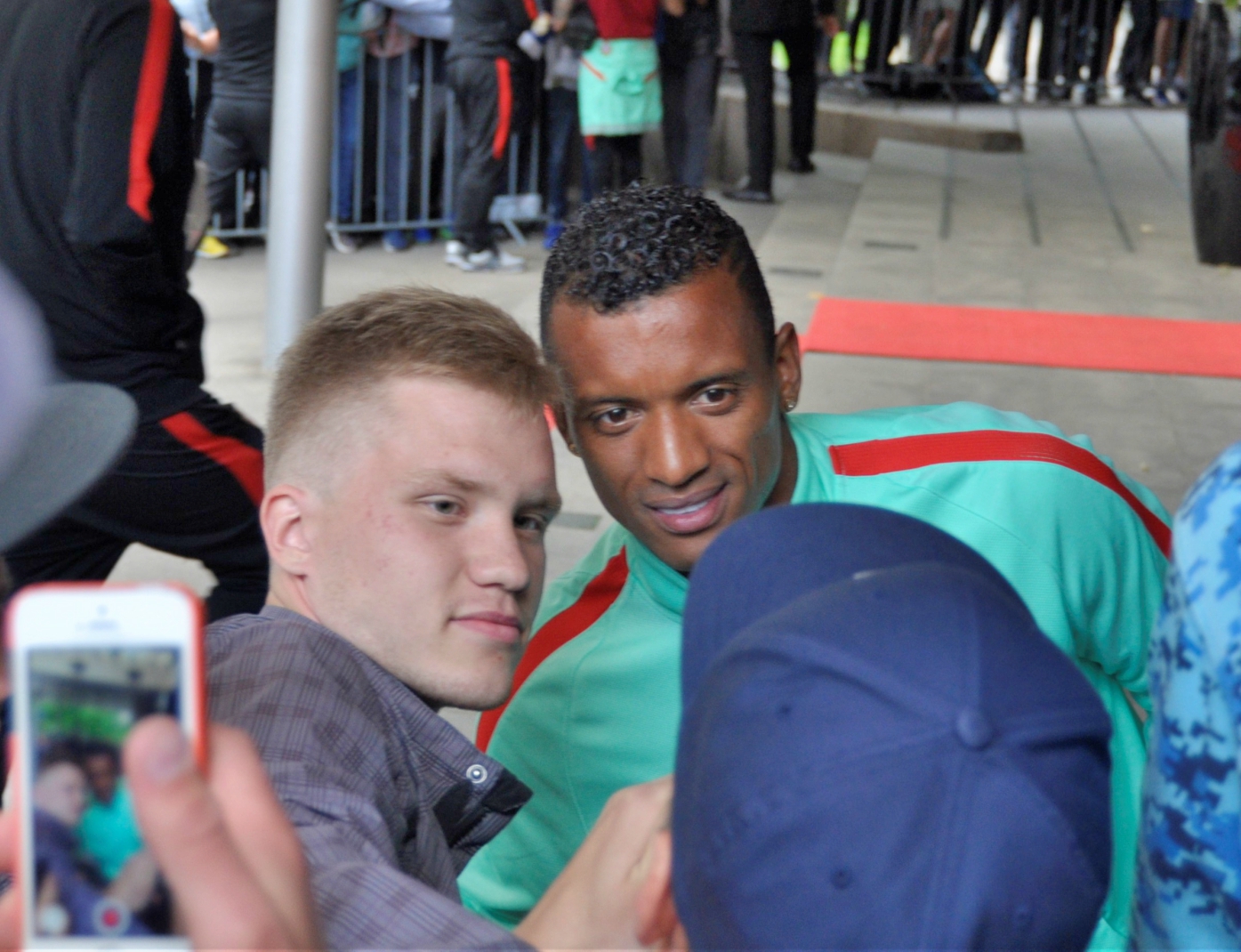 Lielākie entuziasti slavenos viesus tvarstīja jau ceturtdien pie Skonto stadiona. Dažiem patiešām izdevās tikt pie trofejām – sportistu autogrāfiem un pat selfijiem. Savukārt ap 20:30 pie viesnīcas, kurā sportisti mitinās, portāls RītaKafija.lv sastapa pārsimts fanus, kuri nepacietīgi gaidīja ierodamies futbolistus no treniņa. Autobusam iebraucot šķērsielā, pūlis uzgavilēja neviltotās ovācijās. Laipnākais pret sagaidītājiem bija Nani, kas dāsni dalīja autogrāfus un neliedza ar sevi iemūžināties sagaidītājiem. Savukārt puiku lielākais elks Ronaldu tikai pamāja ar roku un devās uz viesnīcu, pat īsti nepiestājot. Divi no viņa faniem nebija gatavi samierināties doties mājup tukšām rokām un apsargu nemanīti pārleca pār barjeru un pieskrēja pie futbolista, apķeroties ap viņu. Ronaldu nedaudz apstulba. Taču savu puikas panāca un tika pie kārotā autogrāfa. Pēcāk laimīgie jaunekļi ar sajūsmu rādīja savas iegūtās trofejas – selfijus un autogrāfus no Portugāļu izlases spēlētājiem. Kā viss draudzīgāko visi vienbalsīgi atzina Nani, bet Ronaldu kā tādu – ļoti lepnu. Taču tik un tā tieši Ronaldu paliek viņu elks numur viens.