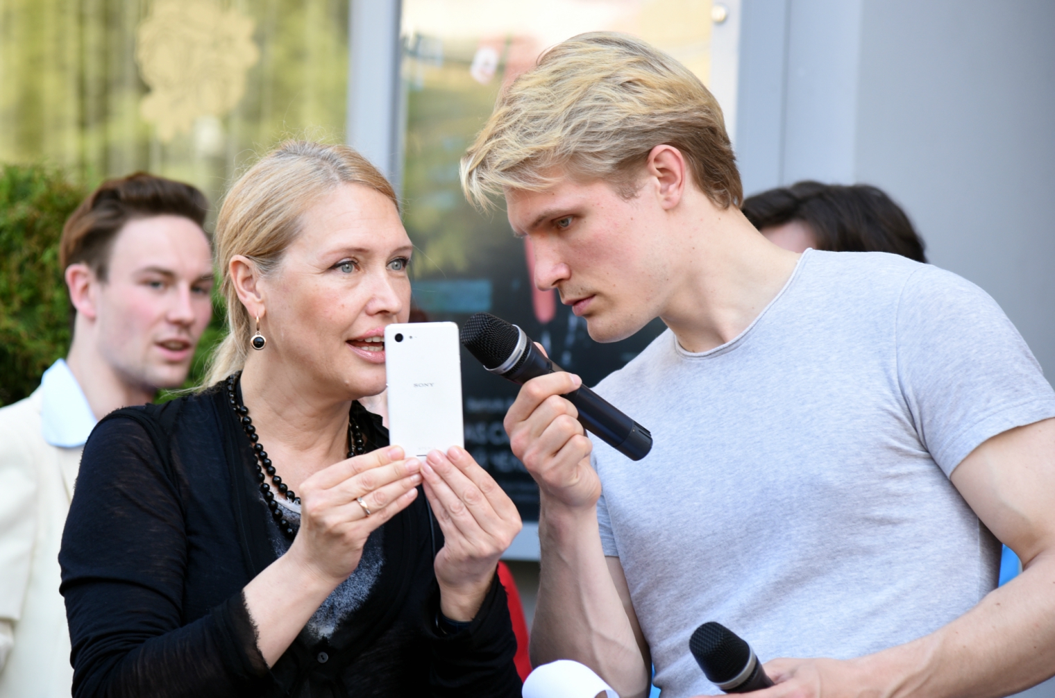Interesanti, ka notiekošo akciju nelaida garām šī teātra viena no pastāvīgajām apmeklētājām – pašmāju slavenākā džeza balss Olga Pīrāgs. Dāma par notiekošo performanci smējās no sirds un spilgtākos kadrus iemūžināja savā viedtālrunī.