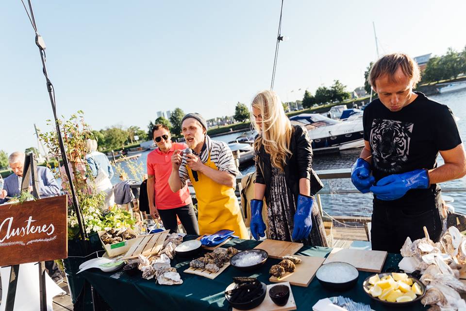 Uz austeru ēšanu Daugavas krastā ieradās virkne sabiedrībā pazīstamu cilvēku. Tostarp, miljonāres Sveta Leva un Nellija Ušakova, pasākumā pie mielastu galda niekojās arī teju visas pašmāju modes dāmas – arī “Riga Fashion Week” rīkotāja Jeļena Strahova. Viņa bija viena no pirmajām, kas neslēpa savu sajūsmu par šīs ballītes tematikas galveno ēdienu austerēm.