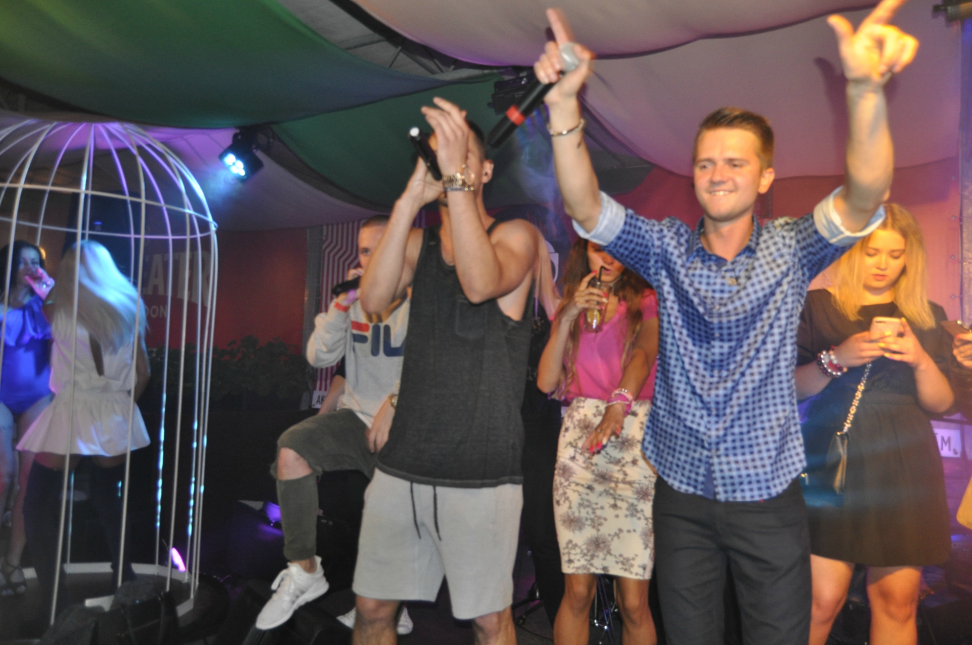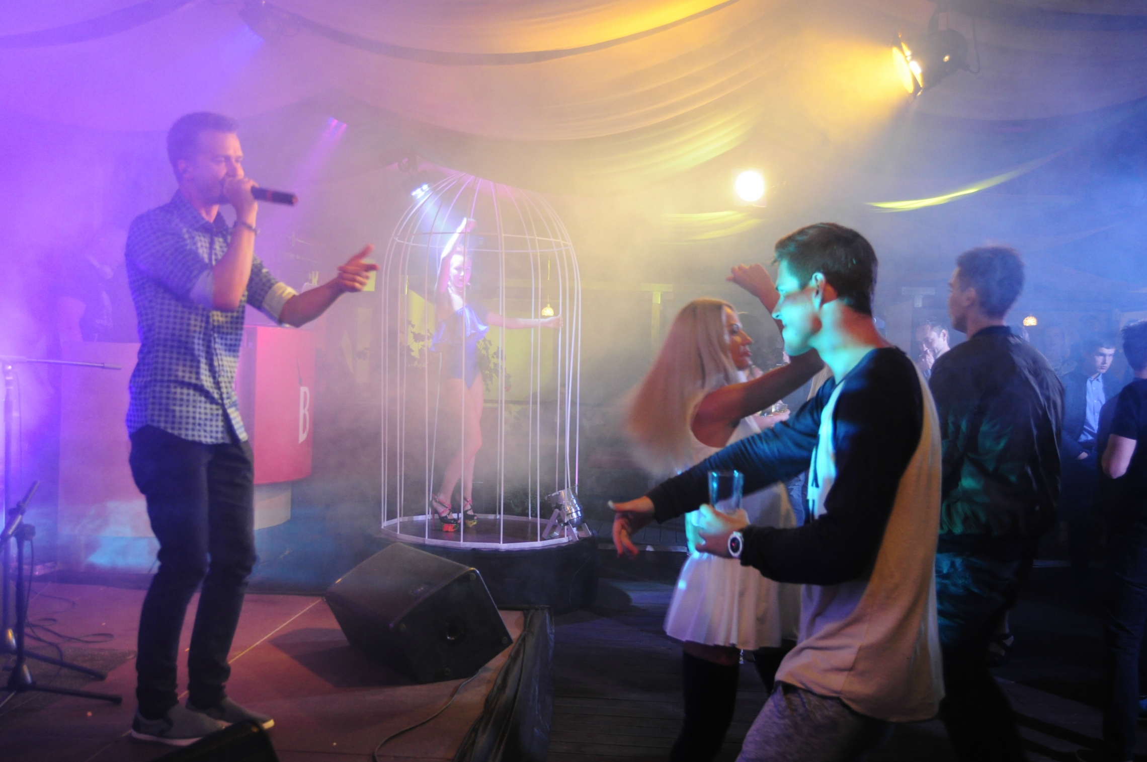 Vēlāk svinības turpinājās kluba otrajā stāvā ar dziedātāja uzstāšanos. Publika dziedāja un dejoja līdzi, tomēr īstā ballītes atmosfēra radās brīdī, kad Puzikovam uz skatuves pievienojās grupa “Olas”. Un dziesma “Policists” pamatīgi iešūpoja publiku uz trakām dejām.