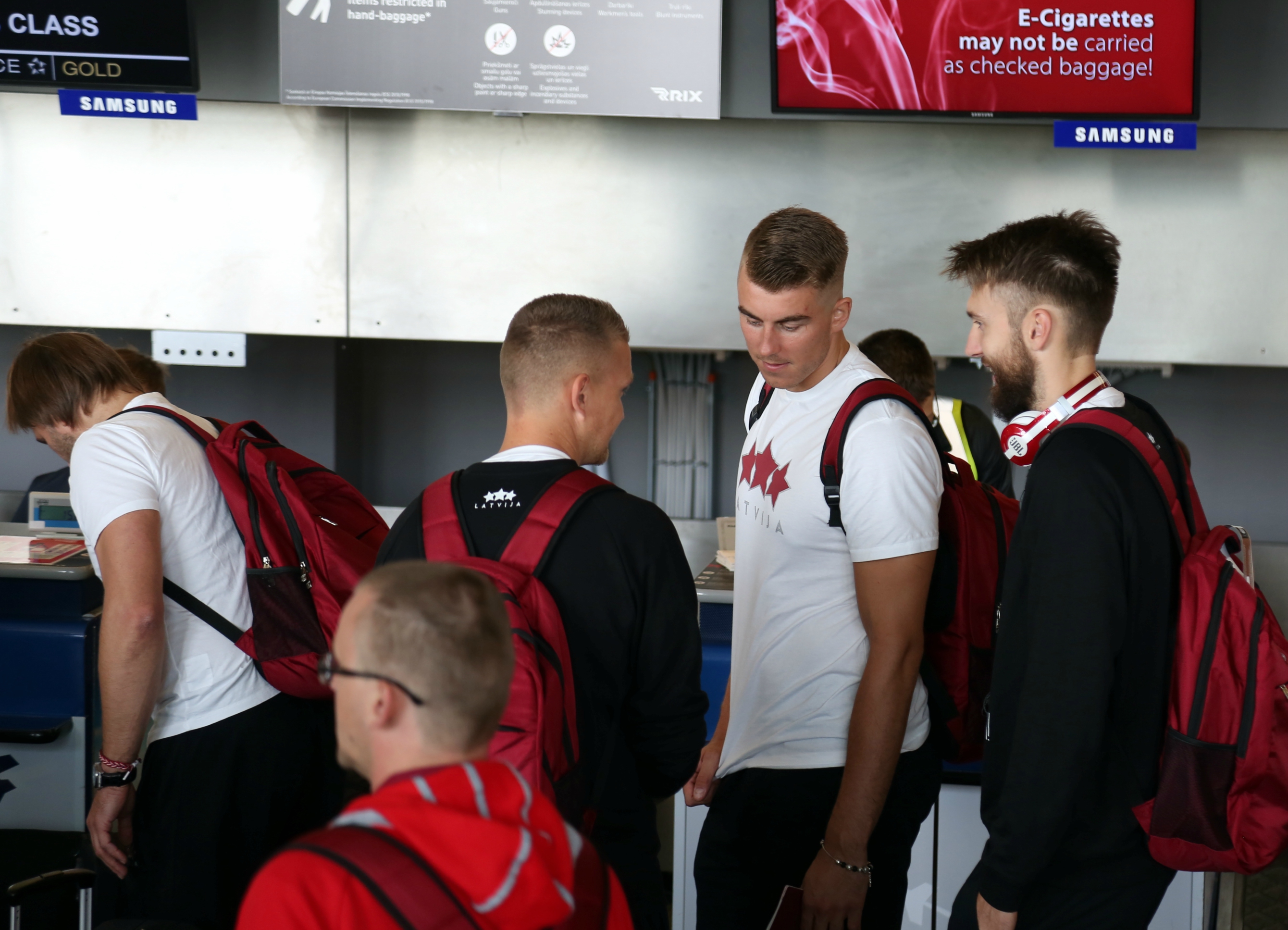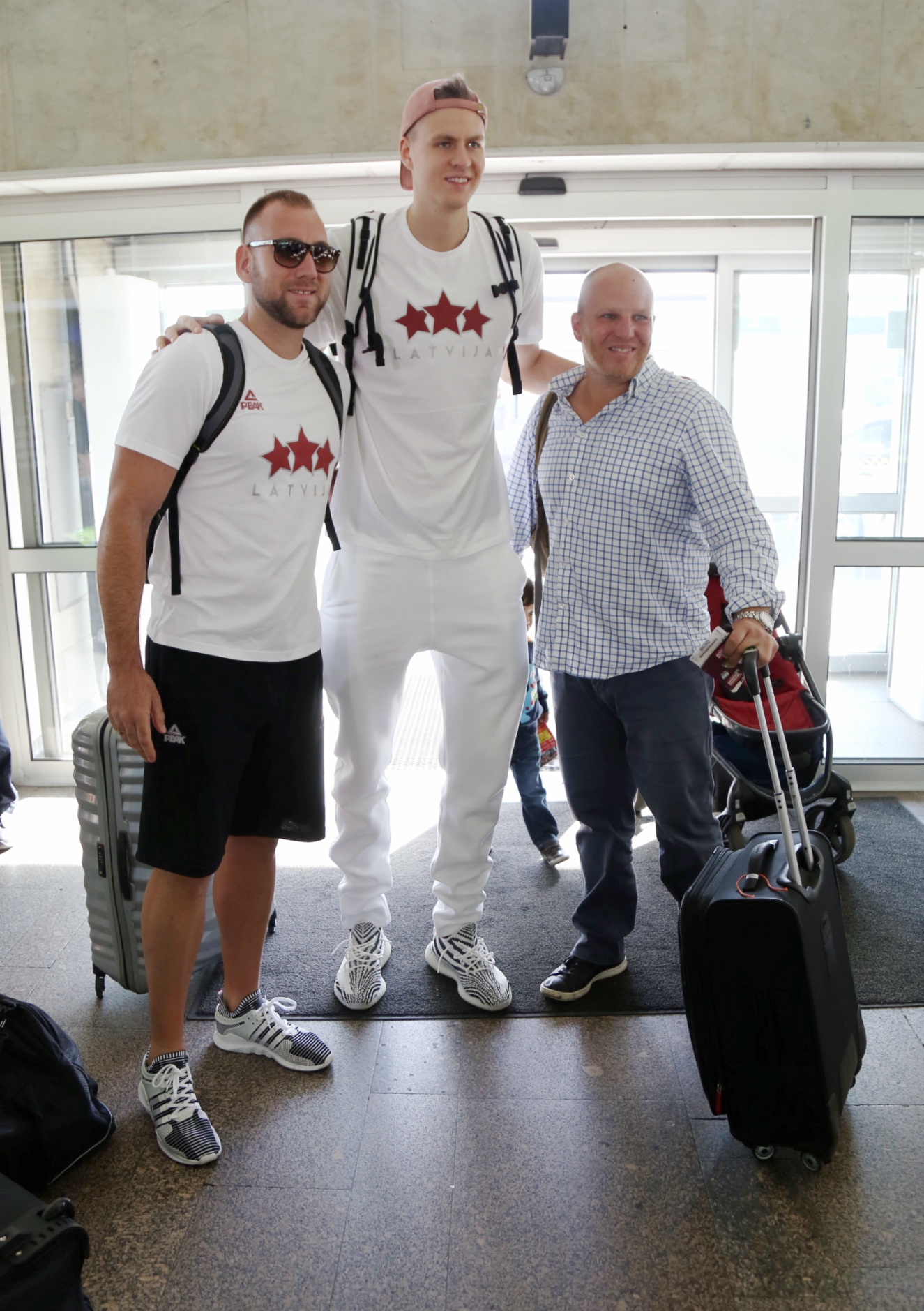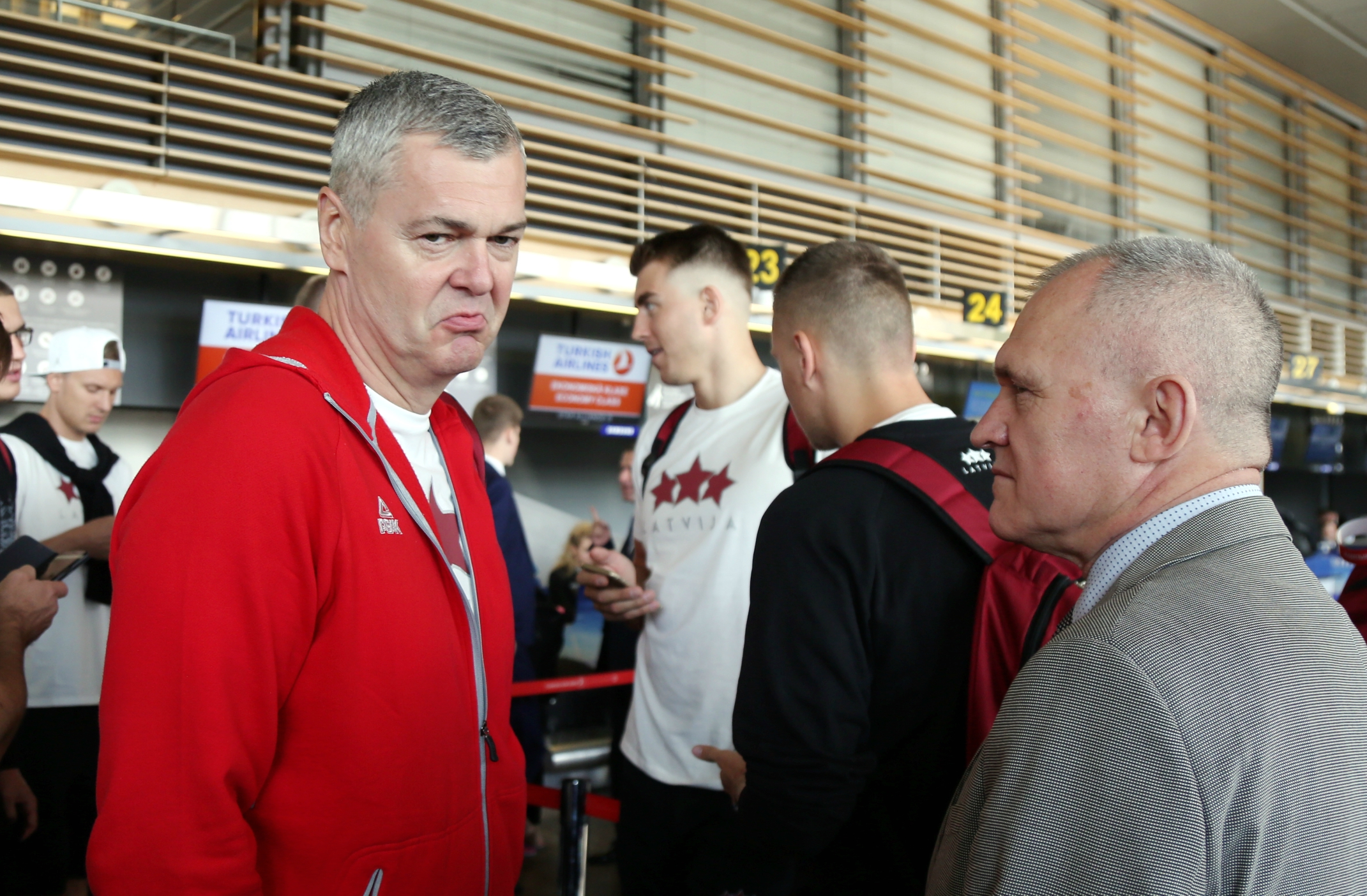 Visi 12 Latvijas izlases spēlētāji trešdien izlido uz Eiropas čempionāta norises vietu, lai vakarā jau aizvadītu pirmo treniņu. Spēlētāji lidostā lielākoties ieradās individuāli un viņus pavada apmēram 20 mediju pārstāvji, kā arī tautas deju ansambļa “Dzintariņš” dalībnieki. Pēc priekšnesuma mazie dejotāji izmantoja iespēju samīļot savus elkus un iegūt autogrāfus. Lielākā fanu uzmanība tika pievērsta (NBA) zvaigznei Kristapam Porziņģim. Viņu lidostā uzrunāja arī ārzemnieki. Tiesa pašmāju līdzjutēju skaits lidostā bija samērā niecīgs.