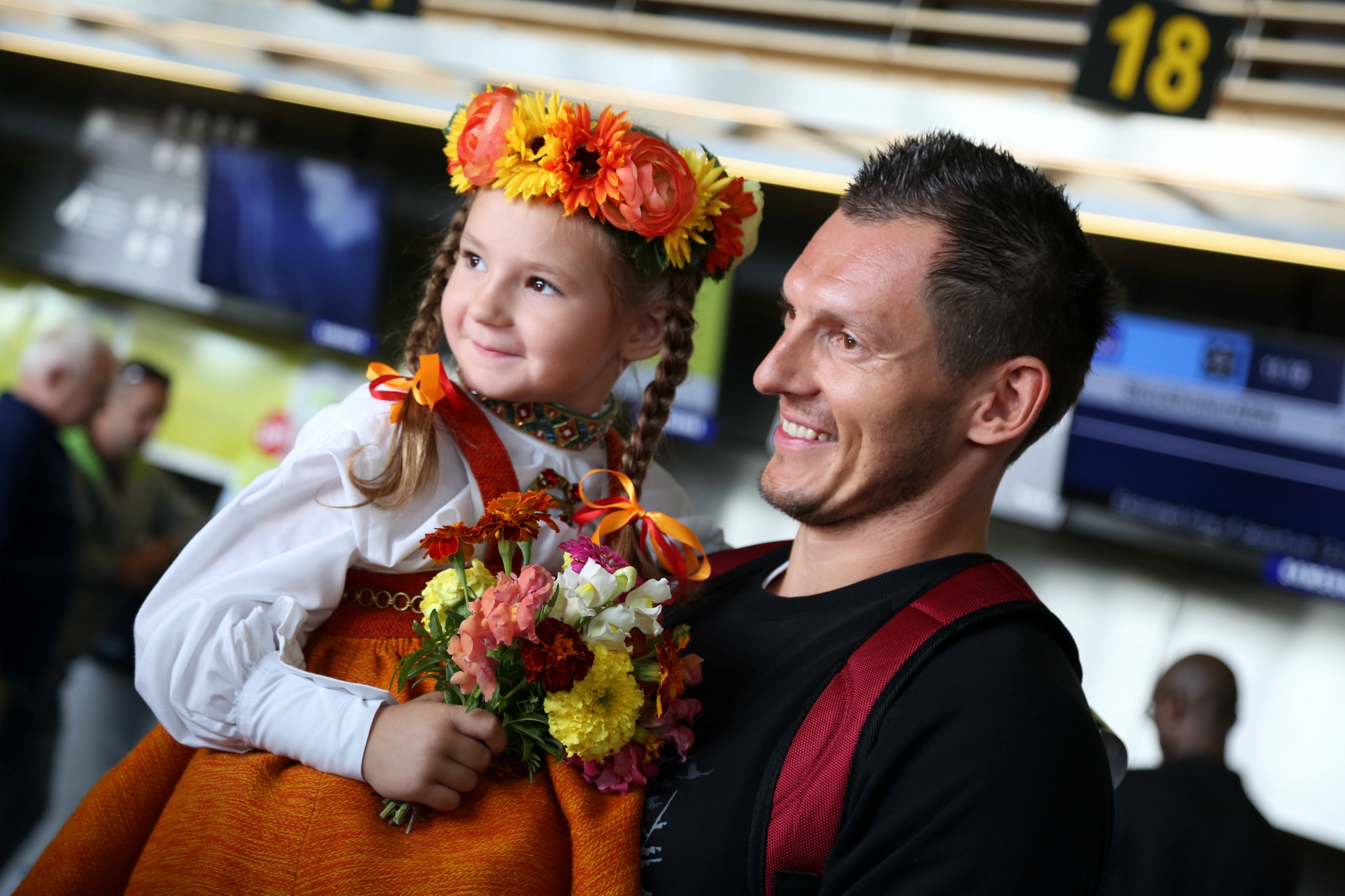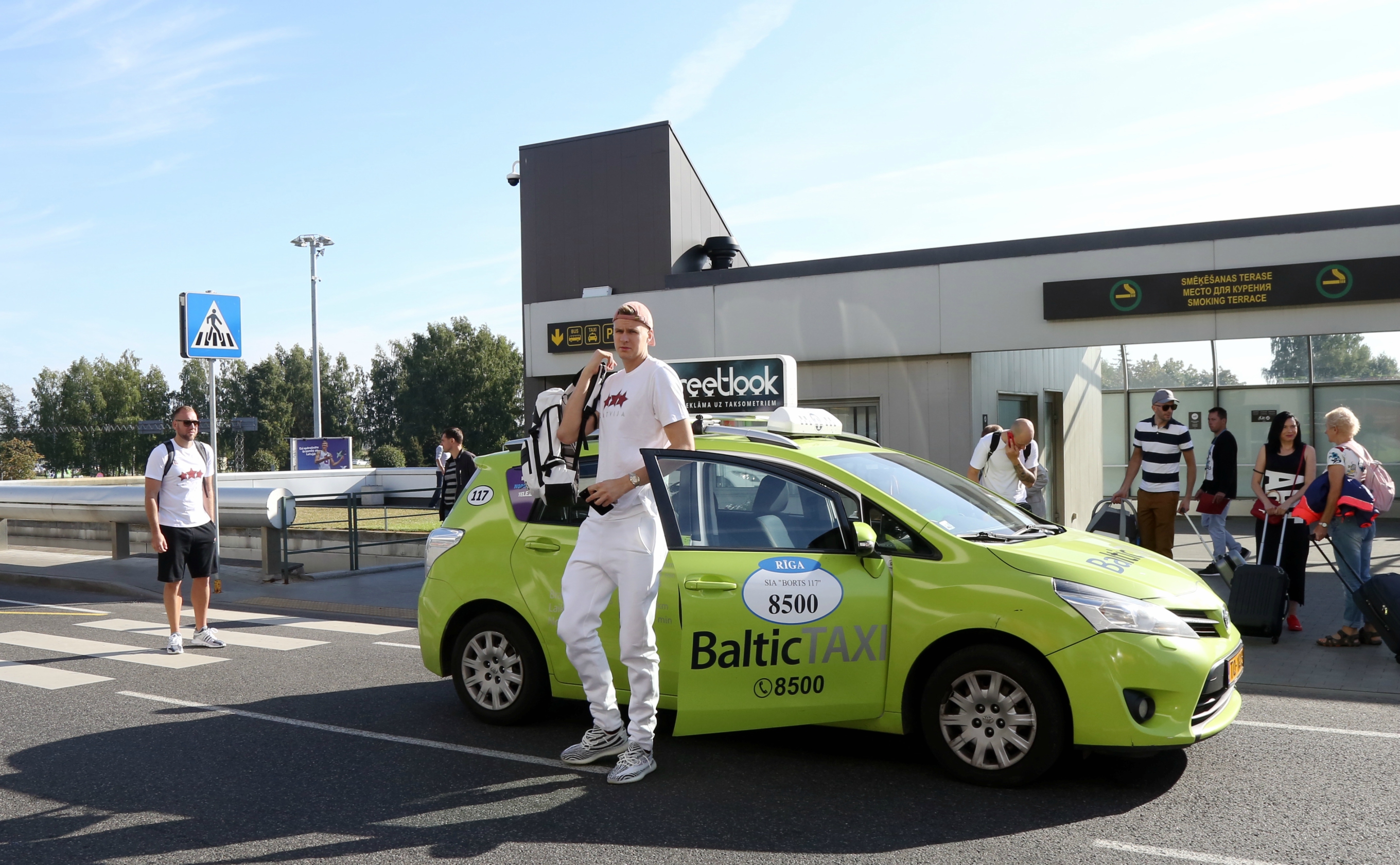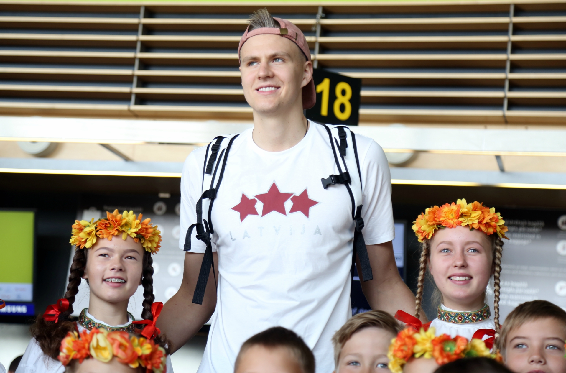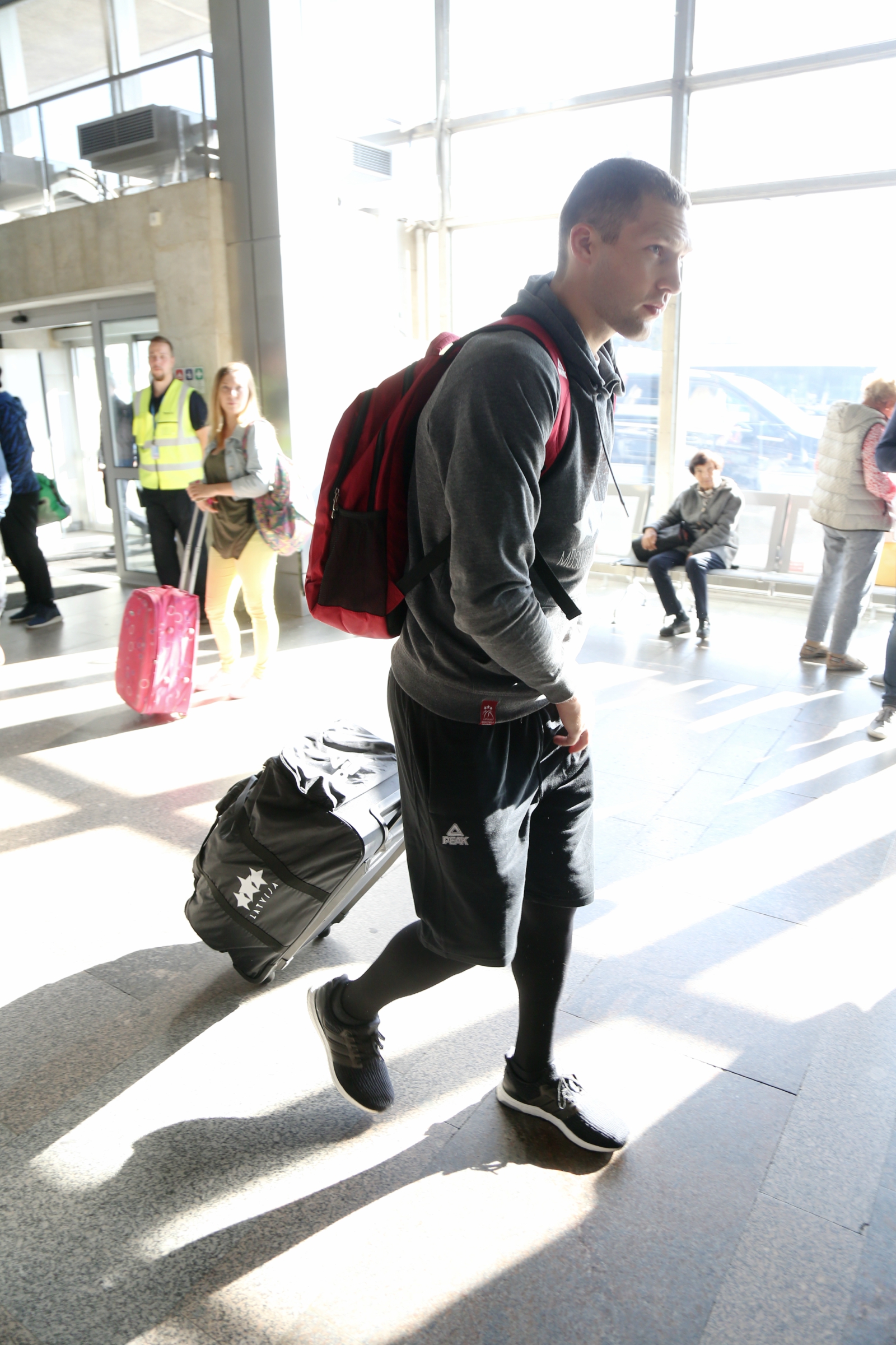 Visi 12 Latvijas izlases spēlētāji trešdien izlido uz Eiropas čempionāta norises vietu, lai vakarā jau aizvadītu pirmo treniņu. Spēlētāji lidostā lielākoties ieradās individuāli un viņus pavada apmēram 20 mediju pārstāvji, kā arī tautas deju ansambļa “Dzintariņš” dalībnieki. Pēc priekšnesuma mazie dejotāji izmantoja iespēju samīļot savus elkus un iegūt autogrāfus. Lielākā fanu uzmanība tika pievērsta (NBA) zvaigznei Kristapam Porziņģim. Viņu lidostā uzrunāja arī ārzemnieki. Tiesa pašmāju līdzjutēju skaits lidostā bija samērā niecīgs.