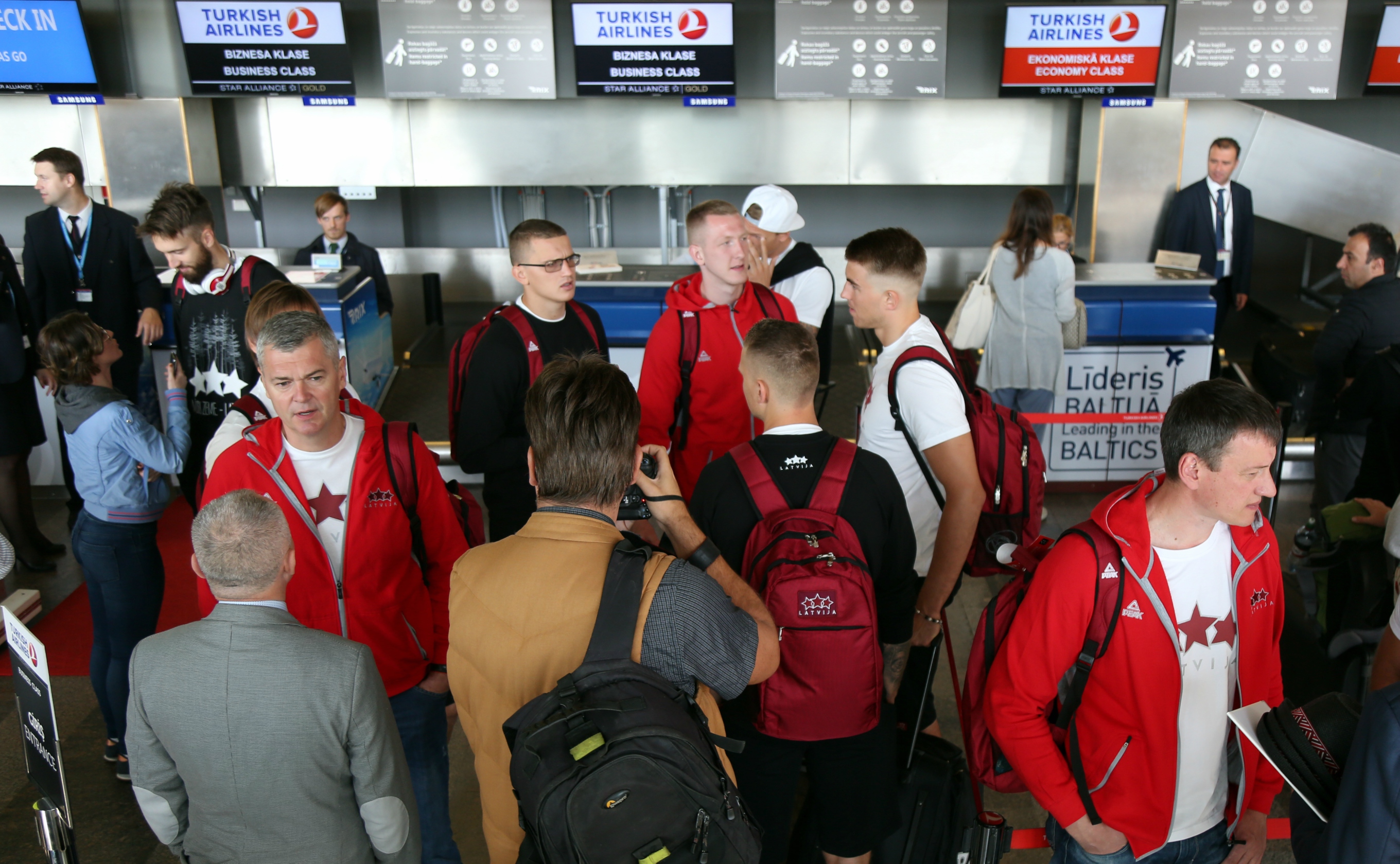 Latvijas vīriešu basketbola izlasi uz Turciju, kur piektdien tā uzsāks dalību Eiropas čempionāta finālturnīrā, trešdien pavadīja mediju pārstāvji, Latvijas Basketbola savienības (LBS) amatpersonas un tautas deju ansambļa “Dzintariņš” dalībnieki. Portāls ritakafija.lv piedāvā ielūkoties reportāžā, kā uz Stambulu devās mūsu basketbolisti.