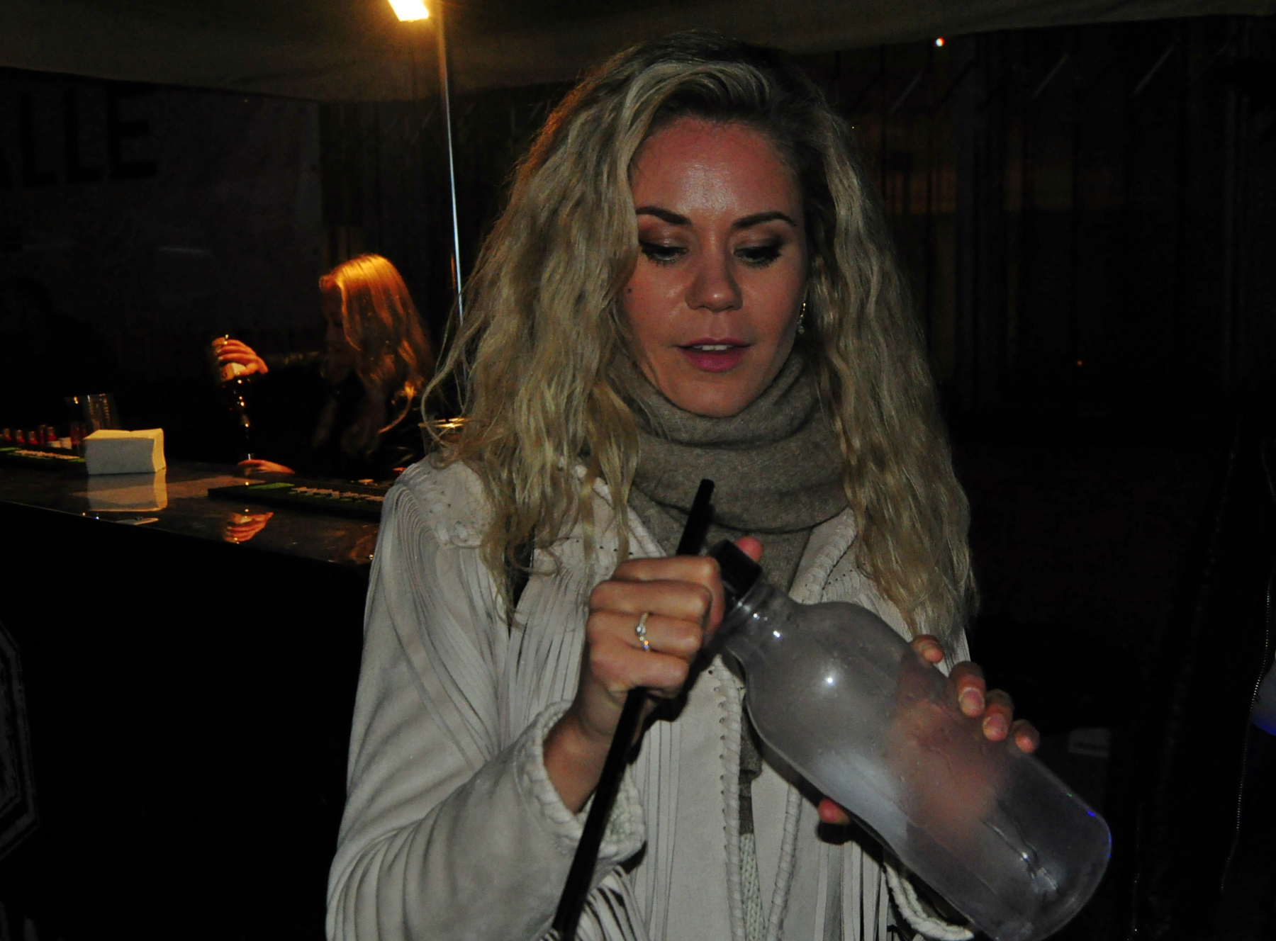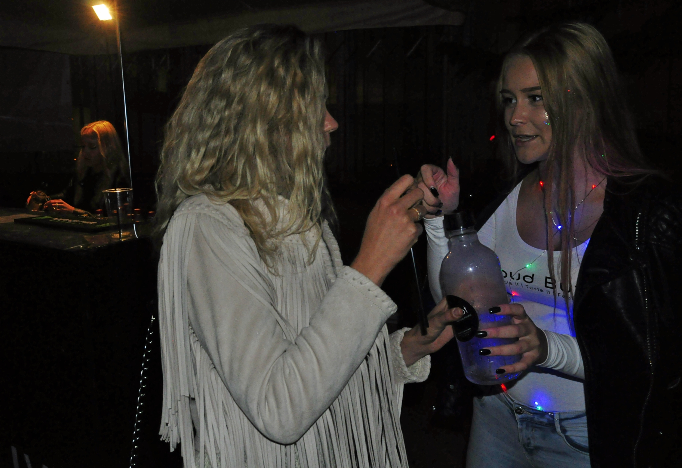 Jau ilgāku laiku aiz okeāna nakts klubos ir ienācis jauns “trends”-  alkoholiskos dzērienus nevis dzert, bet ieelpot. Visi grādīgie dzērieni tiek pasniegti tvaika veidā un īsākā laikā ietekmē mūsu organismu. Aizvadītajā piektdienā “Drifta Hallē” notiekošajā ballītē bija iespēja izmēģināt šo jauno iedzeršanas metodi. Izmēģināt ko jaunu, nelaida garām arī šarmantā dziedātāja Jenny May jeb īstajā vārdā Maija Stuģe.