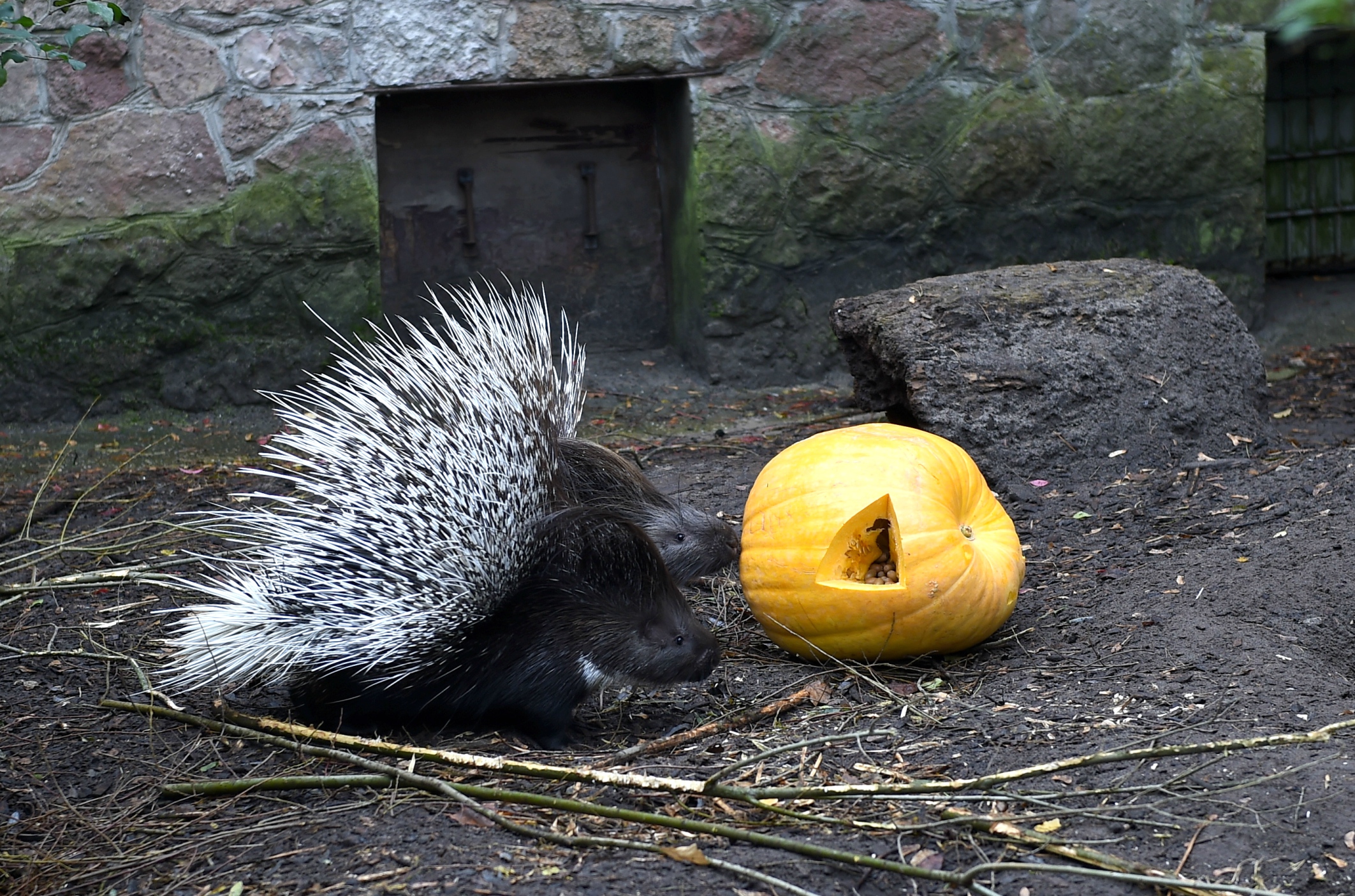 Pēc uzvarētāju paziņošanas un apbalvošanas ar ķirbi kā kārumu launagā mielojās degunlāču ģimene.
