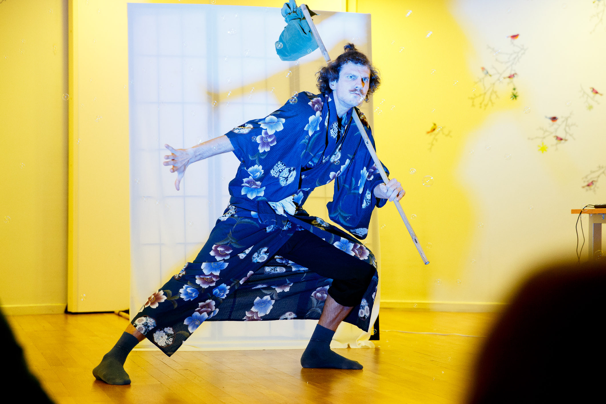 Izrāde “Leģenda par drošsirdīgo samuraju” (ar negaidītu notikumu pavērsienu sižetā) tapa kā īpašais Latvijas Dakteru Klaunu Tatjanas Batovas, Igora Narovska un Izraēlas Daktera Klauna, aktiera un režisora Alekseja Gavrielova sadarbības projekts. Pirmizrāde priecēja Bērnu klīniskās universitātes slimnīcas mazos pacientus, projekta mērķis bija izveidot izrādi, ko dāvināt bērniem, kuri ārstējas slimnīcās, bērniem ar īpašām vajadzībām un jebkuram, kurš atrodas grūtā dzīvēs situācijā.