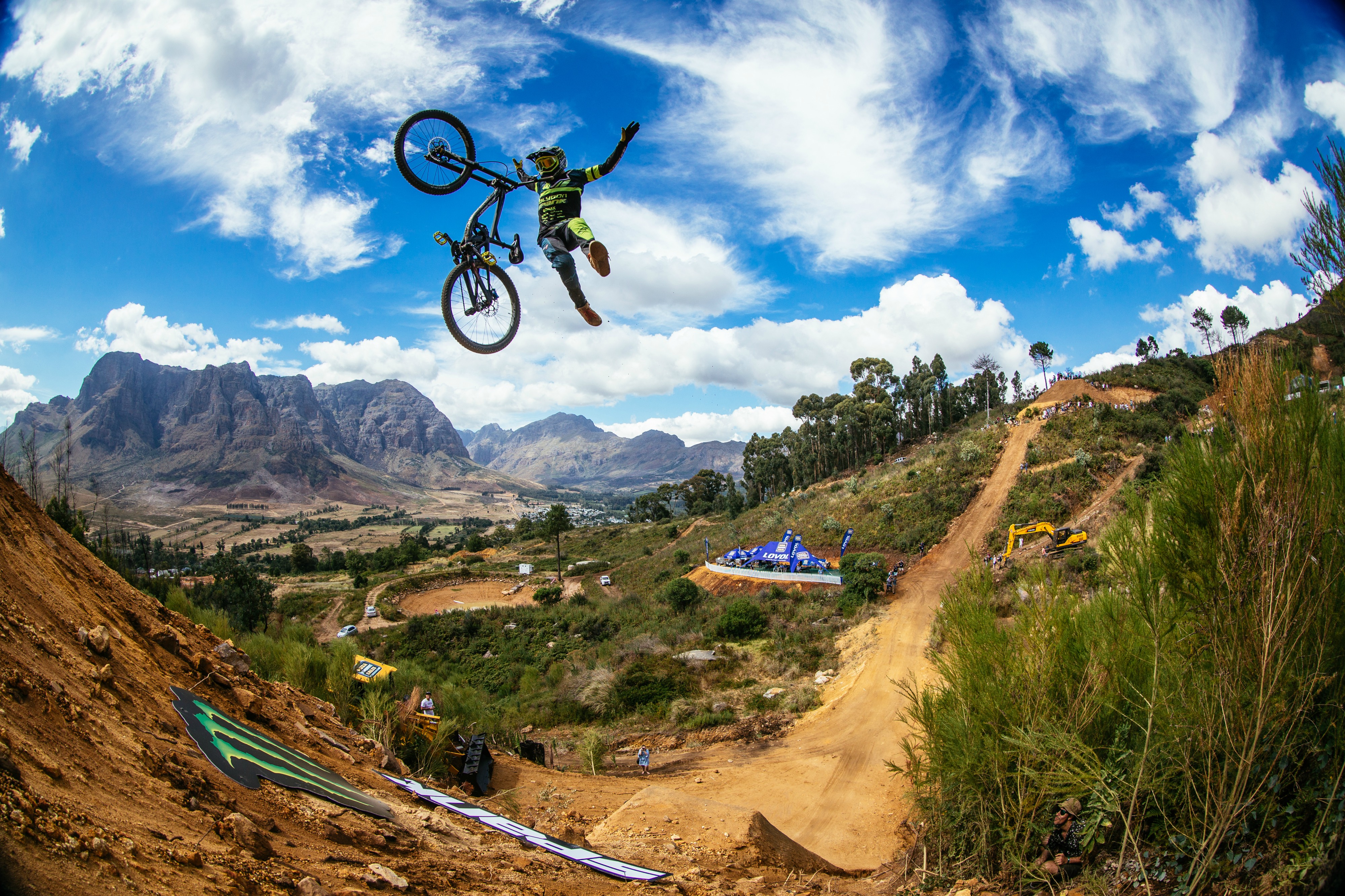 Pasaules labākie “Freeride” kalnu braucēji devās uz Dienvidāfriku, lai uzbūvētu lielāko kalnu divriteņu trasi kāda jel kad redzēta! Jaunā atrašanās vietā – “Stellenbosch” -, tikai stundas attālumā no Keiptaunas, sniedza perfekto atmosfēru cīņai starp cilvēku un dubļiem. 30.5 metru augsti tramplīni, kas izgrebti kalnu sānos, braucēji, kuri lidoja lejā ar vairāk nekā 70km/h – tas viss pasākumā, kas uzstādīja dažādus rekordus. Portāls ritakafija.lv piedāvā ielūkoties “DarkFEST 2018” spilgtākajos mirkļos un trakākajos lēcienos.