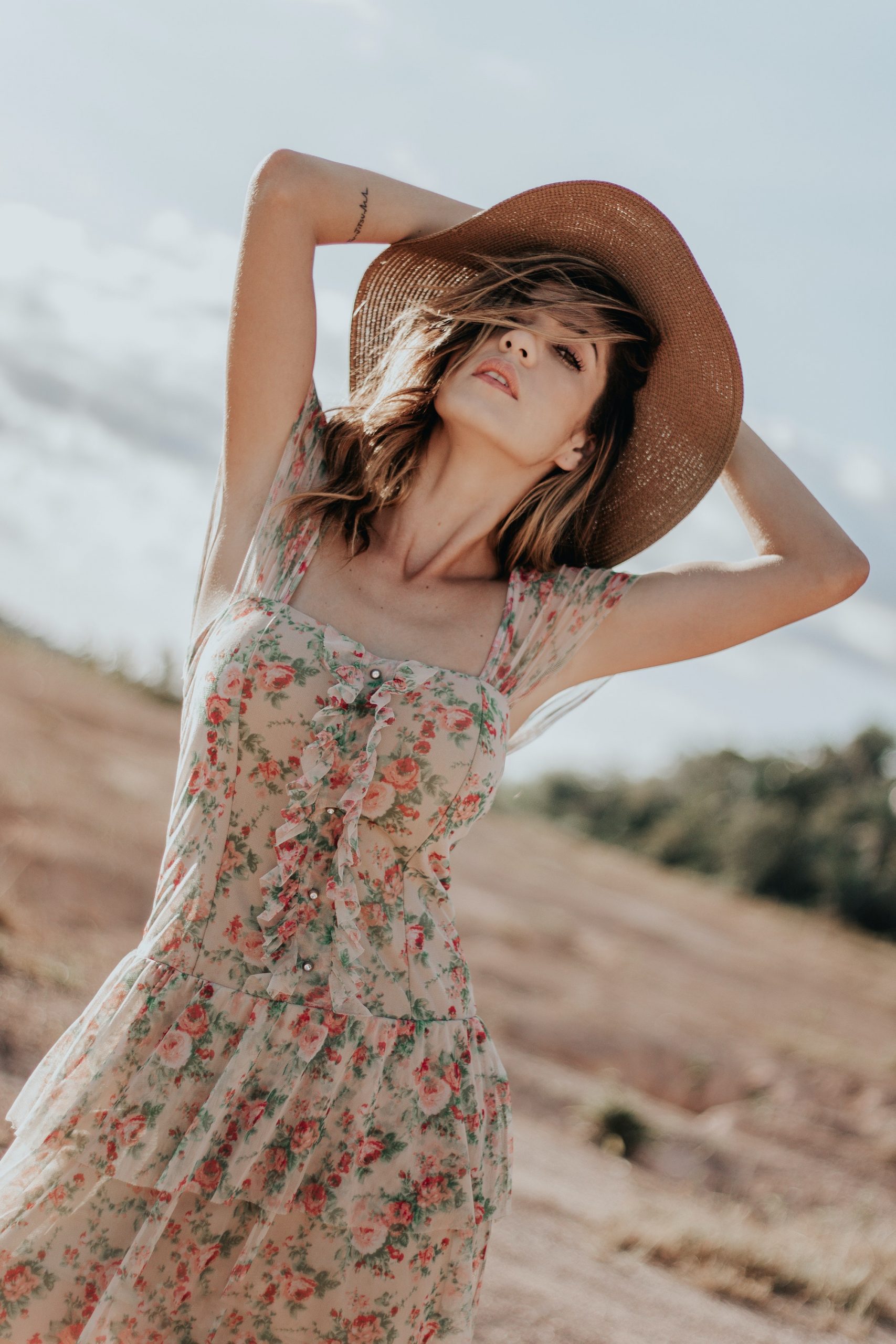 2. Romantiska stila ziedu apdrukas kleitas