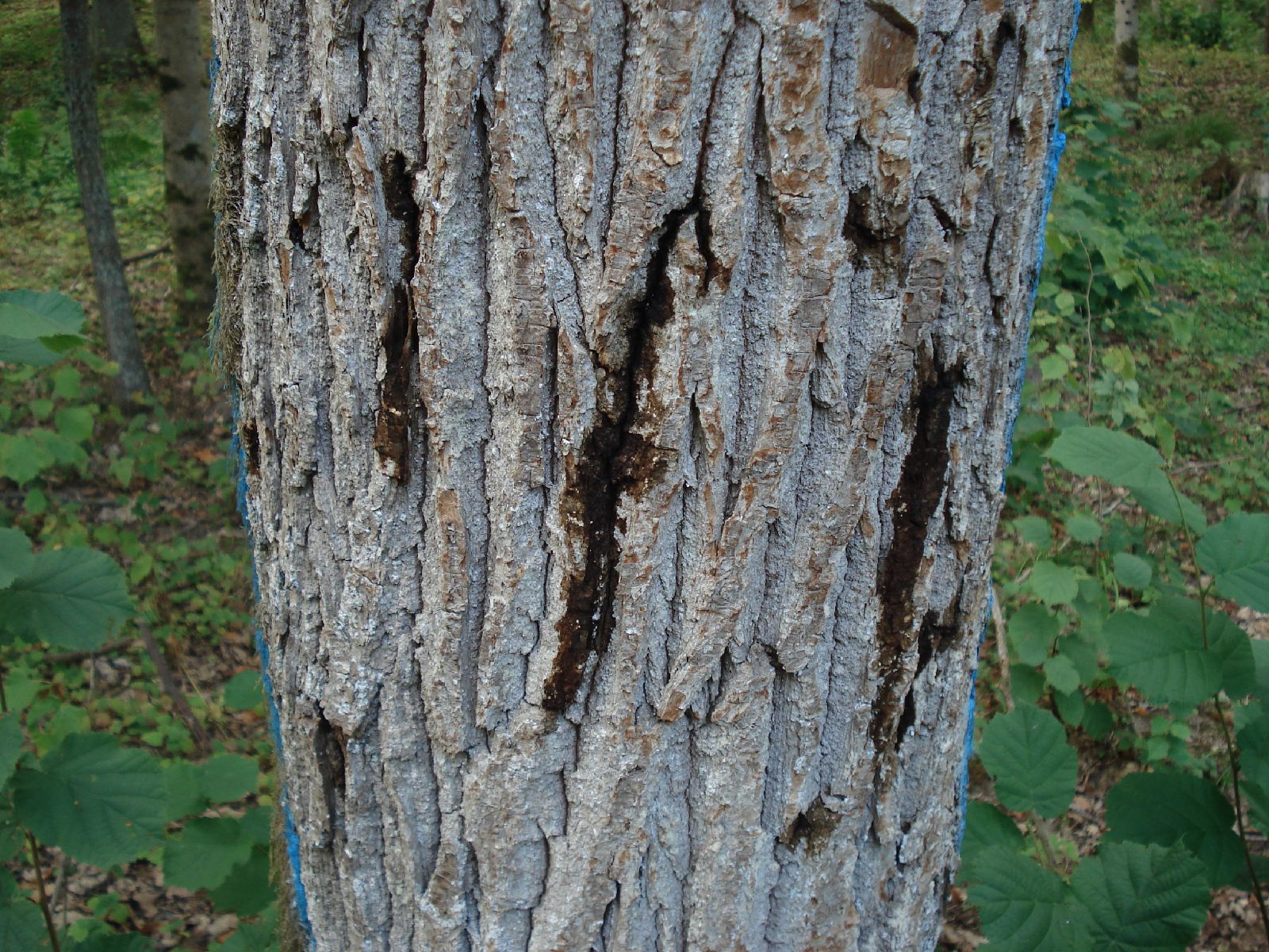Svarīgākā pazīme, pēc kuras slimību iespējams atpazīt, ir tā, ka no inficētā koka stumbra tek tumšs, lipīgs šķidrums (eksudāts), kas izdalās pa mazām, vertikālām plaisām. Brūču garums ir ap 10 – 20 cm un platums ap 1 – 2 cm. Iesākumā tumšā šķidruma izdalīšanās vērojama vienu līdz divus metrus virs zemes, bet pēc tam tā var būt novērojama arī koka lapotnē, šķidruma izdalīšanās parasti vērojama pavasarī (martā – jūnijā) un rudenī (oktobrī – novembrī). Plašas sulojošas brūces ar rūgstošas sulas izdalījumiem nav šīs slimības pazīmes, uzsver Meža un vides aizsardzības daļas vecākais eksperts Oskars Zaļkalns.