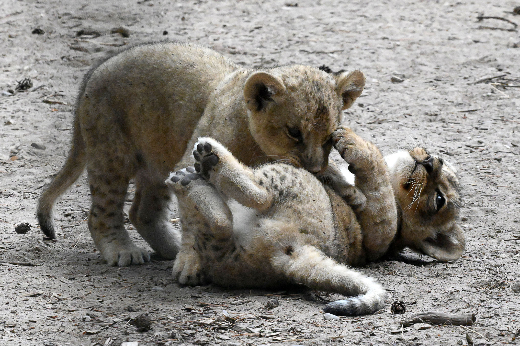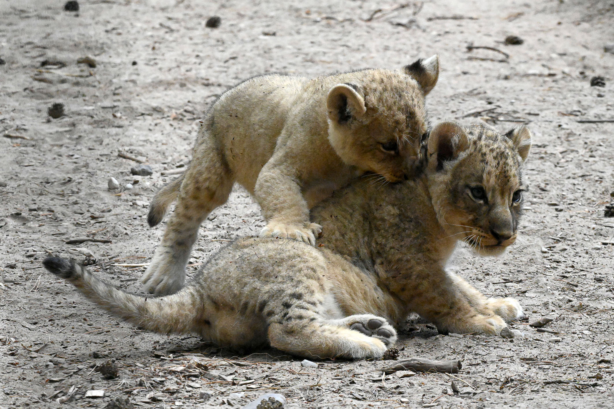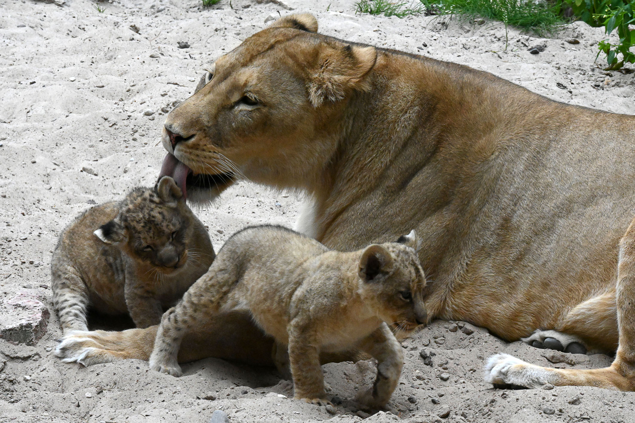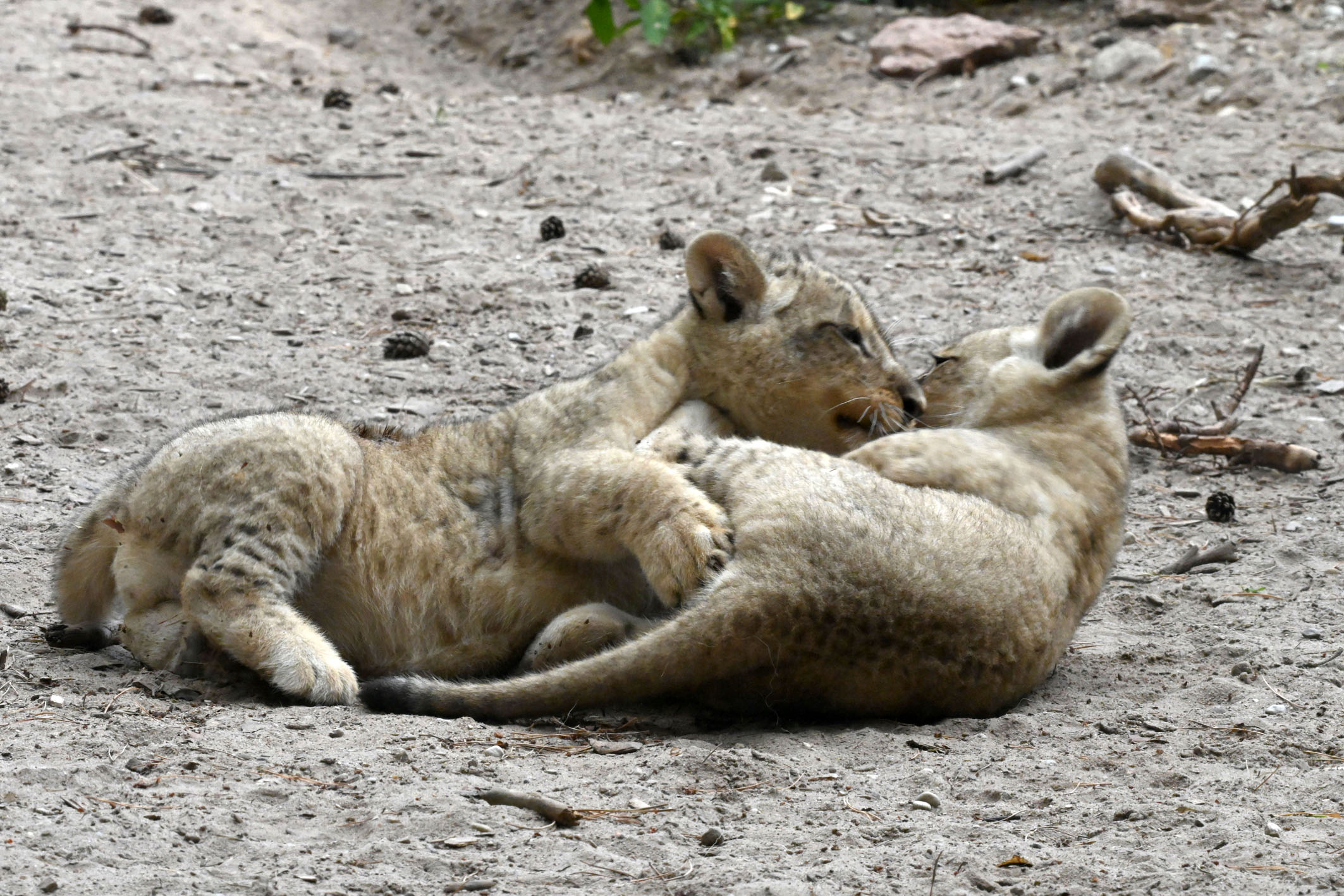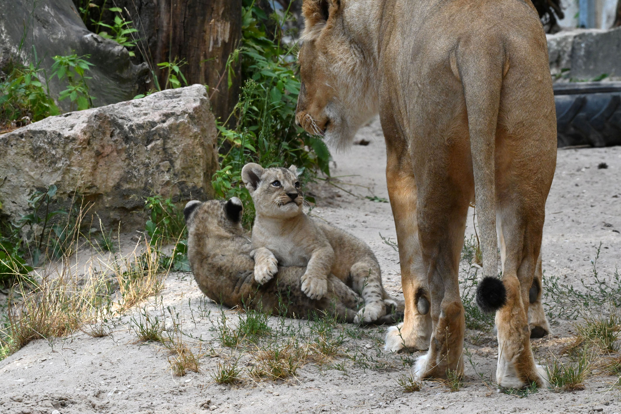 Rīgas Zooloģiskā dārza Āfrikas lauvu ģimenē 31.maijā dzimušie lauvēni tikko nosvinēja divu mēnešu jubileju. Viņi ir veselīgi, attīstās atbilstoši vecumam un nu lielu daļu laika, galvenokārt pēcpusdienā, pavada pastaigu laukumā, skraidot, raustot viens otru aiz astes un drosmīgi izlūkojot katru mītnes nostūri.