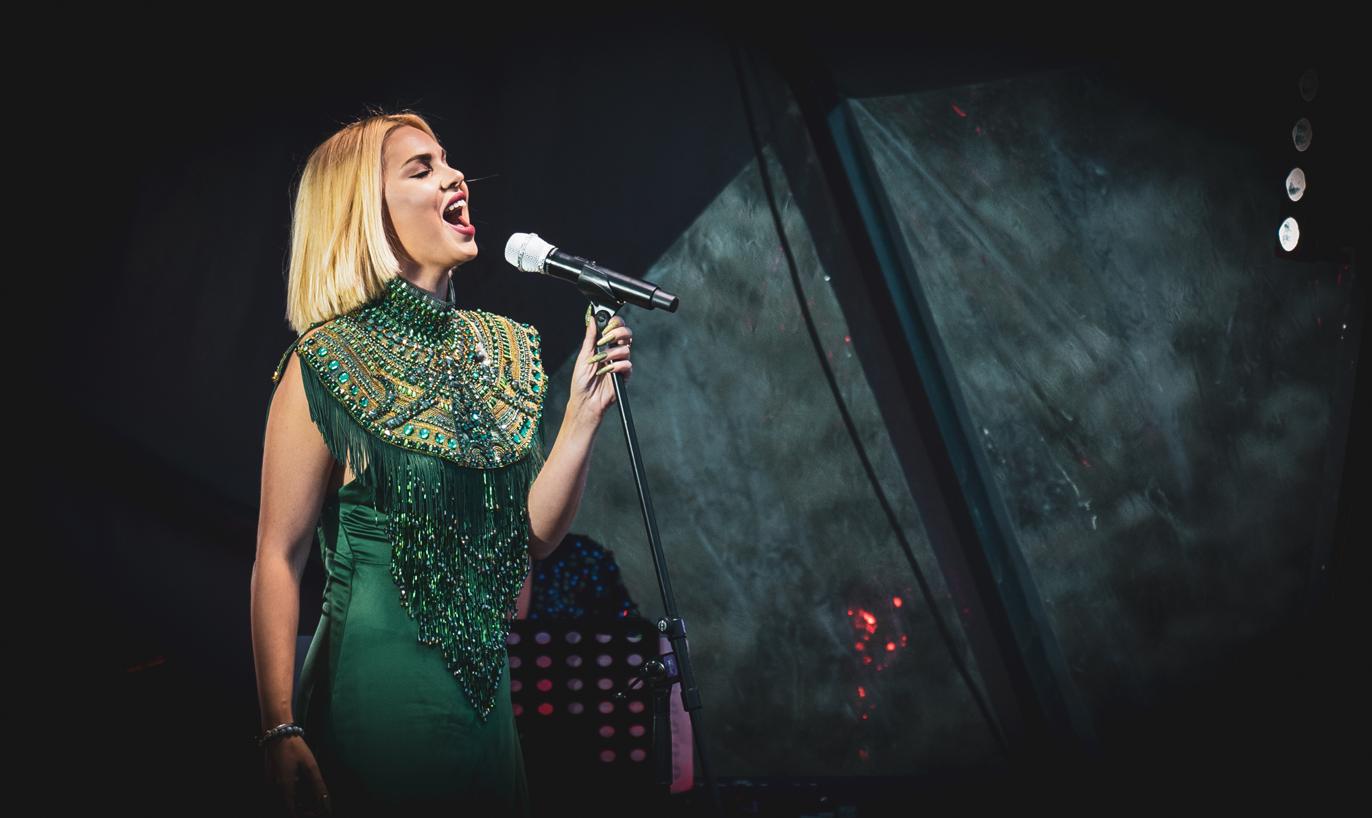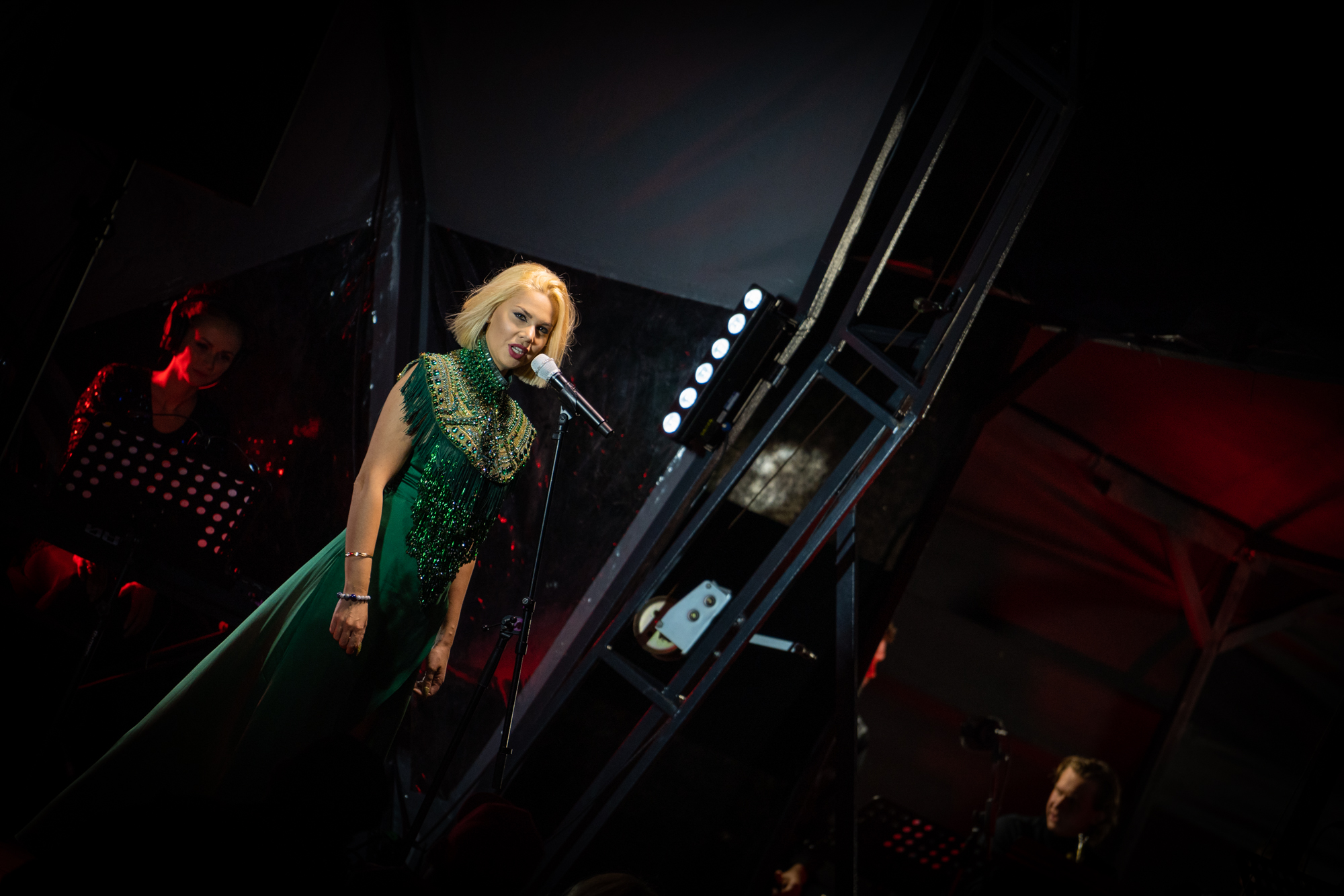 Samanta Tīna koncertā uz peldošās skatuves kāpa kopā ar savām bekvokālistēm, “Liepaja Music Orchestra” (LMO) un tā vadītāju, mūziķi un aranžētāju Jāni Ivuškānu, kurš dziesmām piešķīra citādāku skanējumu un raksturu.