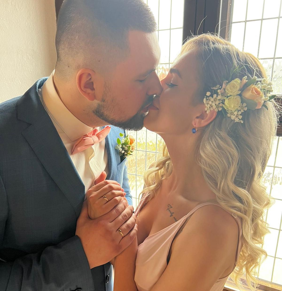 - Adriana Miglāne ar vīru Krišjāni kāzu dienā