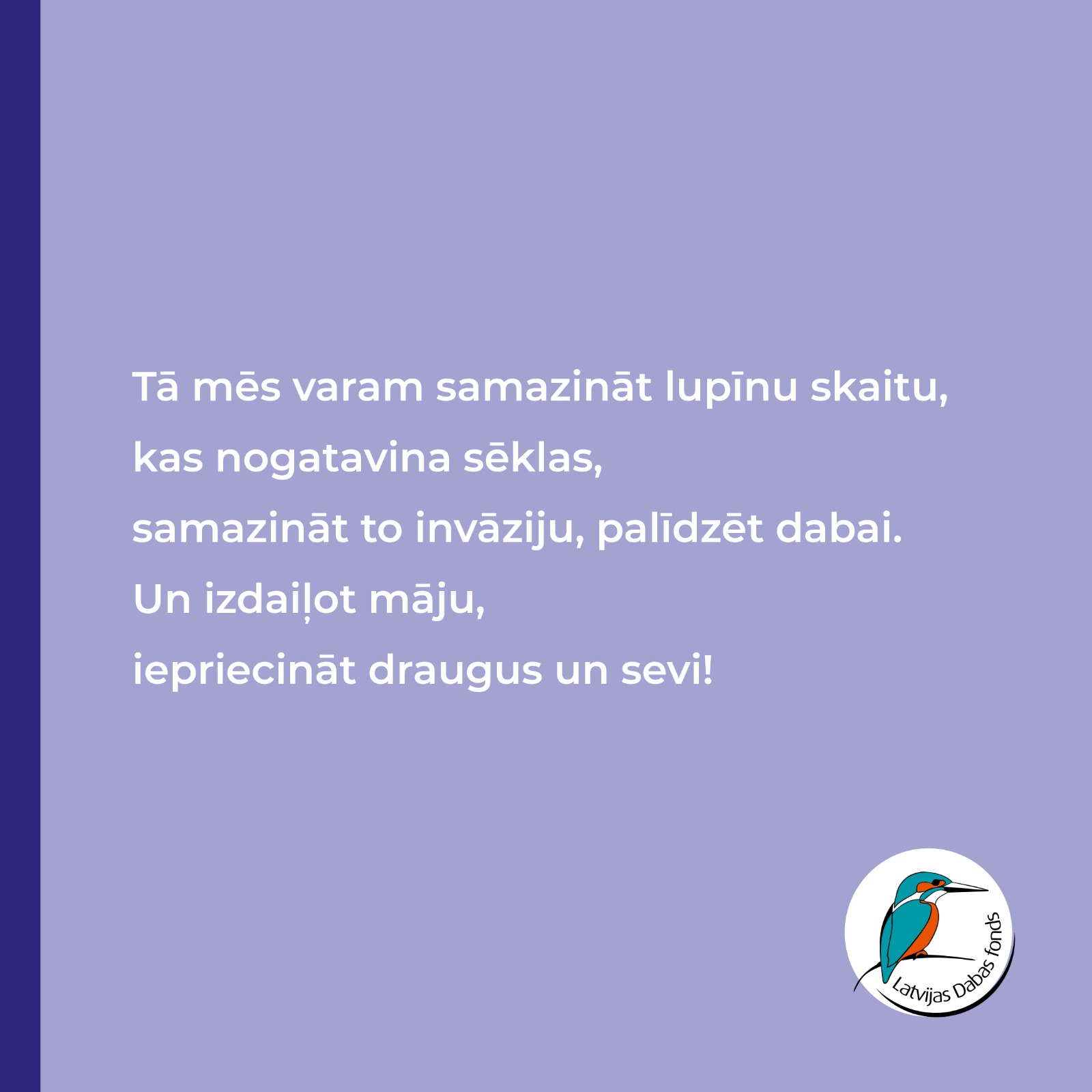 Lasiet arī: Latvijas Dabas fonds vērš uzmanību par krāšņajām lupīnām