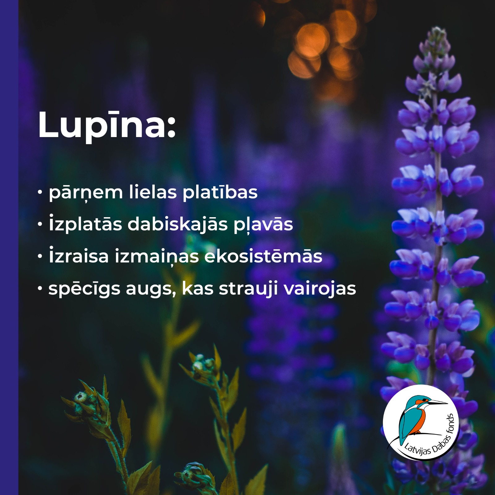 Lupīna ir tauriņziedis, kas efektīvi saista slāpekli un tādējādi palielina augsnes auglību, kas izraisa izmaiņas dabiskajās ekosistēmās – tas nozīmē, ka tā pārveido un iznīcina mūsu pļavas, kuru jau tā ir tik maz! Lupīna ir spēcīga – tas ir liels, daudzgadīgs augs, kas efektīvi vairojas ar sēklām.