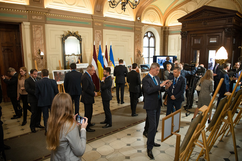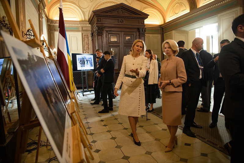 Trīs jūru iniciatīvas samits ir piemērots brīdis izstādes atklāšanai, jo pulcē dalībniekus no valstīm, kuras vieno vēlme stiprināt demokrātiju un pretoties Krievijas brutālajai agresijai tepat Eiropā, akcentēja Saeimas priekšsēdētāja.