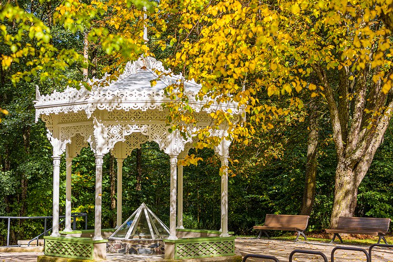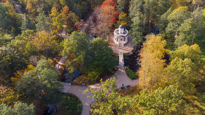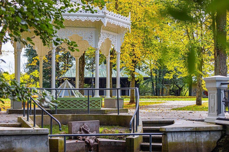 Pērn atjaunotais Ķemeru vēsturiskais parks ir izcila vieta, kur baudīt košo rudens krāšņumu. Cauri parkam ved romantiski pastaigu celiņi, pavīd krāsainu koku lapotnes, parka ainavā var apskatīt vēsturisko arhitektūru – paviljoni, rotondas un divpadsmit tiltiņi, kas šķērso cauri parkam plūstošo Vēršupīti.