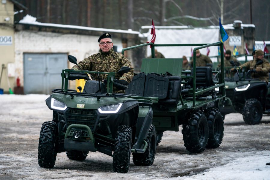 Pērn uzsāktās Ziedot.lv kampaņas “Labas ziņas” ietvaros trešdien, 25. janvārī, svinīgā pasākumā, klātesot aizsardzības ministrei Inārai Mūrniecei, Ukrainas vēstniekam Latvijā Oleksandram Miščenko un Ukrainas Bruņoto spēku pāstāvjiem, uz Ukrainu nosūtīta pirmā Latvijā ražotas militārās tehnikas krava – deviņi kvadracikli un deviņas īpaši pielāgotas kaujas platformas, kā arī četri militārie skrejriteņi ar kopējo vērtību 323 148,30 eiro. Tie ir Latvijas sabiedrības ziedojumi, kas pārtapuši reālā un praktiskā palīdzībā.