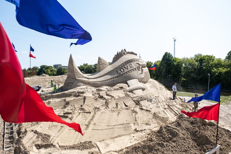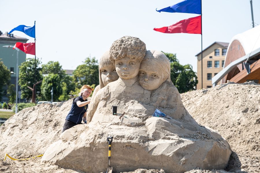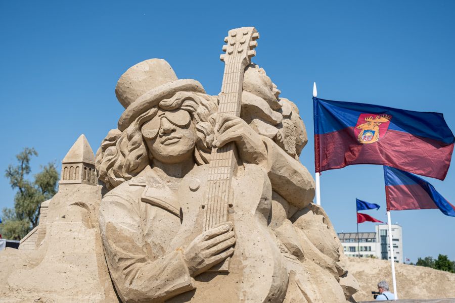 Pasta salā Jelgavā atklāts Baltijā lielākais smilšu skulptūru parks, kurā varēs novērtēt 17 tēlnieku no deviņām valstīm smilšu mākslā atveidotos pasaules mūzikas hitus.