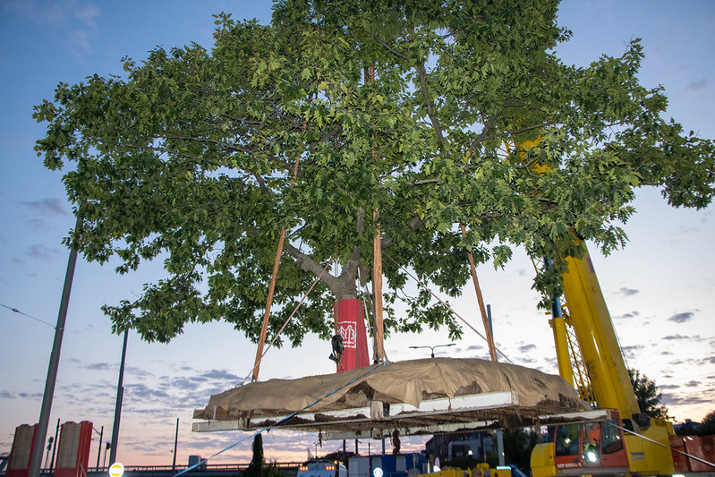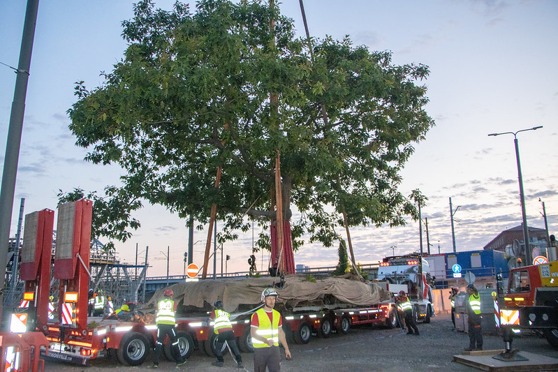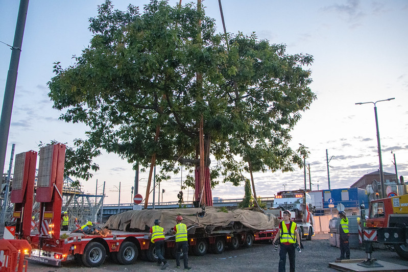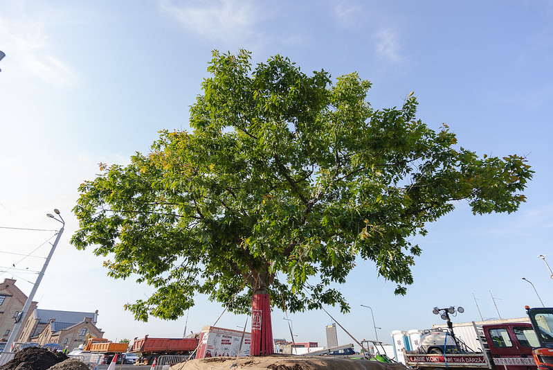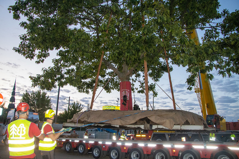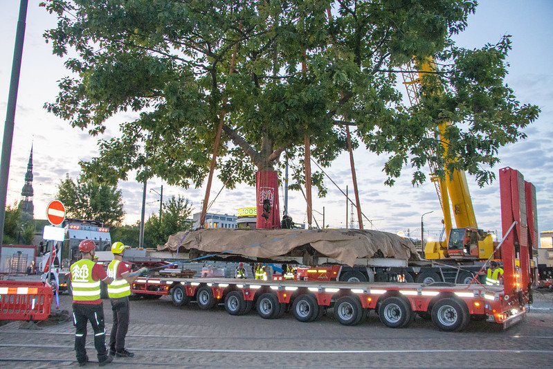 Pārstādīšanas darbus veica pilnsabiedrība “RBBL” kopā ar uzņēmumu “LABIE KOKI” projekta “Rail Baltica” integrēšanai Rīgas centra infrastruktūrā ietvaros.