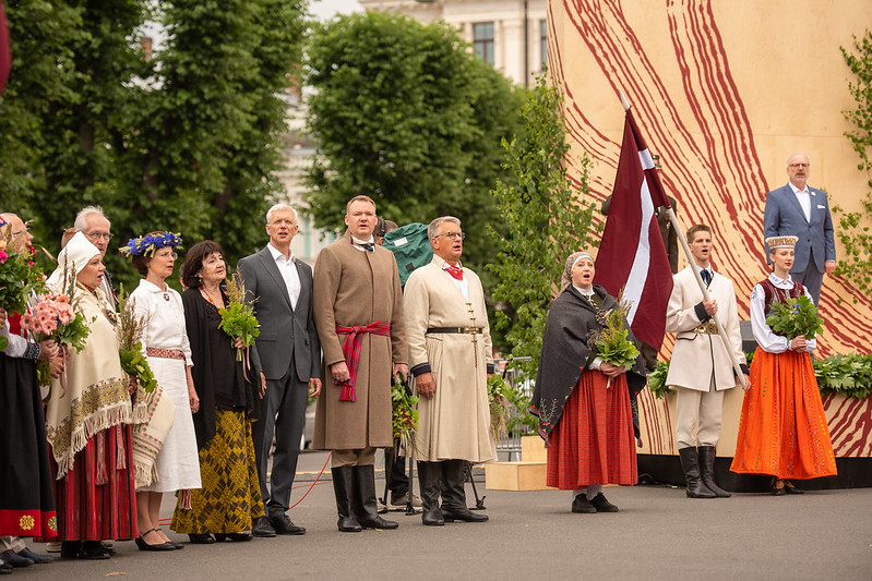 Uzrunājot klātesošos, Valsts prezidents Egils Levits sacīja: “Mīļie latvieši! Dziesmu svētkos mēs svinam mūsu esību. Dziesmā ir mūsu nācijas kodols. Dziesmā ir mūsu tautas dvēsele. Dziesma ir Latvijas valstiskuma šūpulis. Pirmo latviešu dziesmu svētku himna vēlāk kļuva par mūsu valsts himnu. Dziesmu svētkos katra nākamā paaudze kļūst nedalāmi piederīga latviešu tautai un Latvijas valstij. Dziesmu svētkos mēs saplūstam kopā vienotā tautā. Izdzīvosim arī šajos Dziesmu svētkos mūsu ideālo Latviju, pēc kā mēs katrs tiecamies! Saules mūžu Latvijai!”