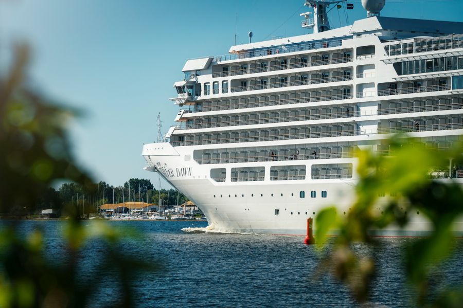 Sestdien 16.septembrī Rīgas ostā tika sagaidīts jaunākais no ASV kruīzu kompānijas “Silversea” flotes kuģiem “Silver Dawn”. Šis ultra luksusa klases kuģis ir vien gadu vecs, tas uzbūvēts 2022.gadā Dženovas kuģu būvētavā Itālijā.