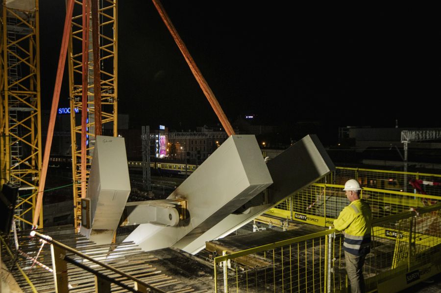 Līdz novembra beigām stacijas dienvidu zonā kopumā plānots uzstādīt astoņas šādas konstrukcijas, darbus secīgi plānojot gan naktīs, gan pa dienu. Stacijas jumta augstākais punkts sasniegs gandrīz 30 metru atzīmi.