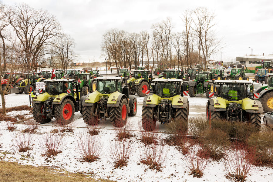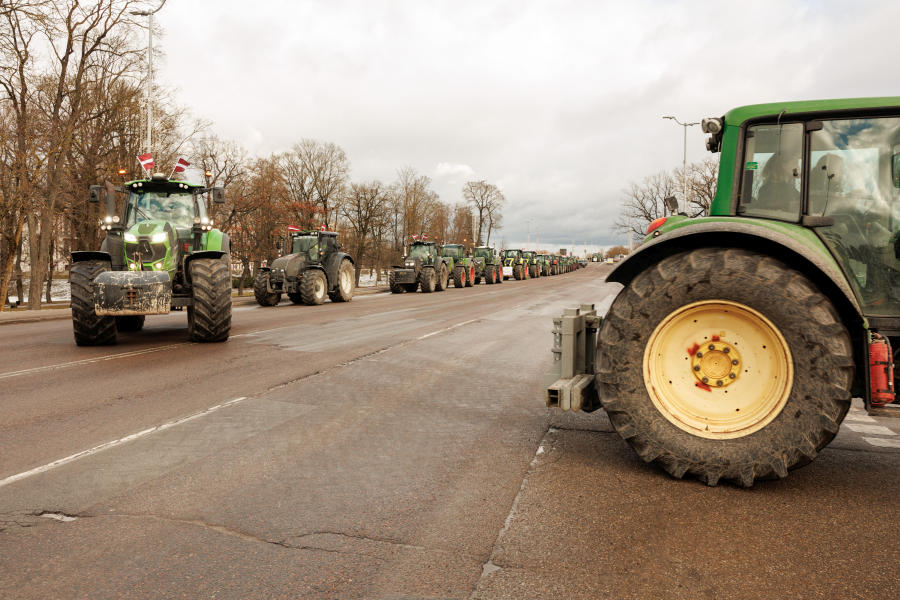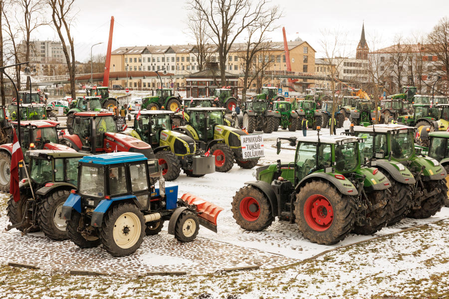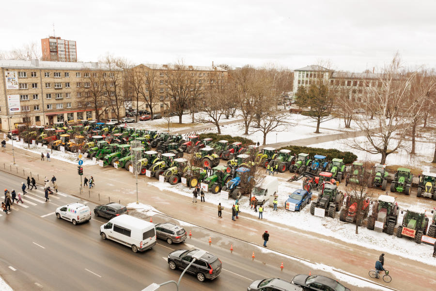 Pirmdien, 5. februārī, 16 Latvijas pilsētās notiekošajos lauksaimnieku protestos piedalās aptuveni 2000 lauksaimniecības tehnikas vienības un tūkstošiem lauksaimnieku.