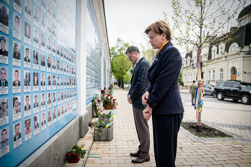 Kopā ar Ukrainas ārlietu ministru Braže nolika ziedus pie Varoņu sienas, godinot Krievijas agresijas karā kritušos Ukrainas kareivjus, informē Ārlietu ministrija.