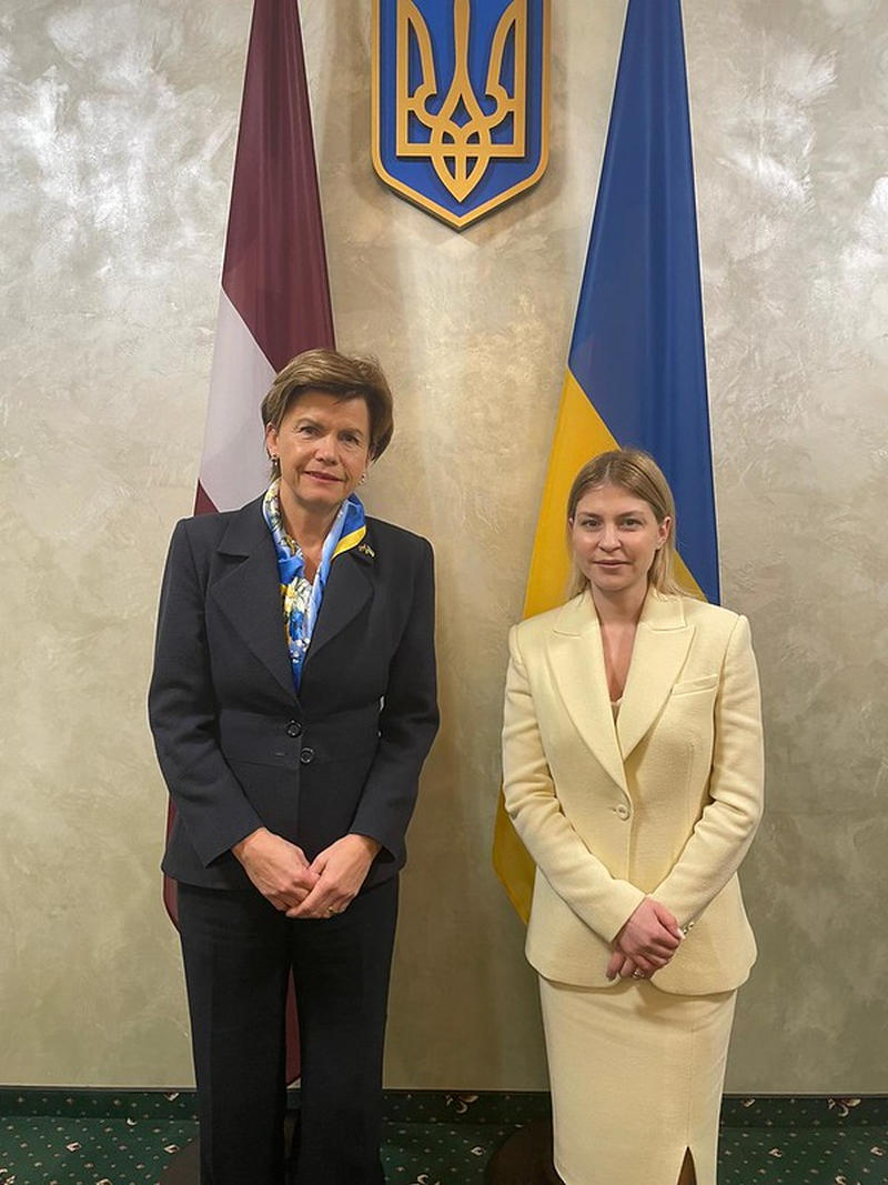 Sarunā ar Augstākās Radas (parlamenta) priekšsēdētāju Ruslanu Stefančuku (Ruslan Stefanchuk) Latvijas ārlietu ministre apliecināja, ka Latvija turpinās atbalstīt Ukrainas rekonstrukciju, īpaši koncentrējoties uz nesen Krievijas raķešu uzlidojumos cietušo Černihivas reģionu. Viņa apstiprināja Latvijas Saeimas nodomu rīkot Krimas platformas parlamentārās dimensijas samitu Rīgā jau šī gada rudenī. Tāpat tika pausta pateicība par Latvijas aktīvo atbalstu deportēto Ukrainas bērnu atgriešanai.