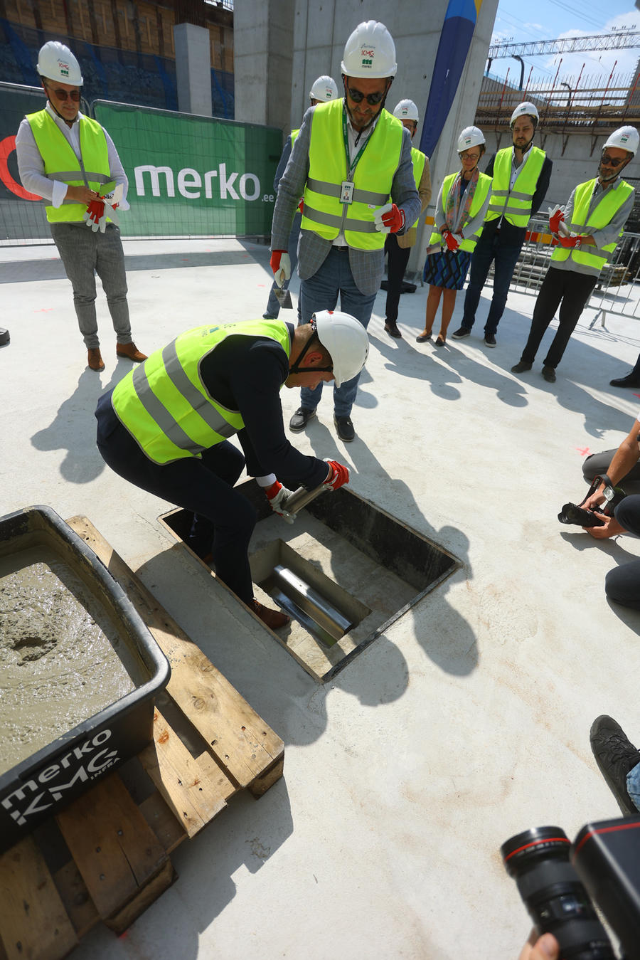 Termināļa būvniecība, kas sākās pagājušajā rudenī, ir sasniegusi pamatakmens ielikšanas posmu. Pasākumu ar savu klātbūtni pagodināja Eiropas Komisijas Mobilitātes un transporta ģenerāldirektorāta (DG MOVE) ģenerāldirektore Magda Kopčinska, Igaunijas klimata ministrs Kristens Mihals, “Rail Baltic Estonia” vadītājs Anvars Salomets, “Rail Baltica” kopuzņēmuma “RB Rail” vadītājs Marko Kivila, “Zaha Hadid Architects” pārstāvis un termināļa arhitektoniskā risinājuma autors Mičele Salvi, “Merko Ehitus Eesti” vadītājs Jāns Mē un “KMG Infra” vadītājs Indreks Pappels.