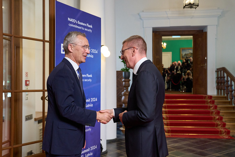 Valsts prezidents Edgars Rinkēvičs Rīgas pilī otrdien, 11. jūnijā, tikās ar NATO ģenerālsekretāru Jensu Stoltenbergu (Jens Stoltenberg). Tikšanās notika NATO Austrumu flanga valstu jeb tā dēvētā Bukarestes devītnieka (B9) samita Rīgā laikā.
