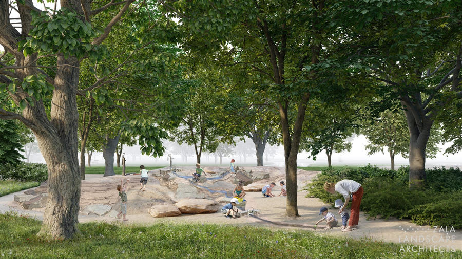 “Raugoties parka 110 gadus senos dārzu arhitekta Kūfalta plānos, redzama promenāde no Arkādijas līdz pat Āgenskalna līcim. Arī mūsdienās Uzvaras parka kā šāda mēroga zaļa, apkaimes vienojoša dārza loma ir ārkārtīgi būtiska, tāpēc jau tuvākajā nākotnē jānodrošina droši un ērti parka daļu savienojumi un gājēju pārejas, kā arī jaunizveidotā Mārupītes posma sasaiste ar apkārtējo parku ūdenstilpēm vienā nepārtrauktā ūdens sistēmā un plūsmā no Māras dīķa līdz pat Daugavai,” uzsver ainavu arhitekte Linda Zaļā. “Ūdens klātbūtne un Mārupītes līkloči kā tēlains simbols caurvīs abu plānoto rotaļu laukumu tematisko stāstu. Šis solās būt Latvijas publiskajā ārtelpā nebijis ūdens rotaļu laukums bērniem ar iespēju līdzdarboties, iepazīt un izbaudīt ūdens dabu ne tikai siltajā gadalaikā. Mākslīgi veidots mikroreljefs ar akmeņu krāvumiem un strautiem, kuros plūstošais ūdens vadāms ar augstas kvalitātes un izturības, vandāldrošām, mehāniski darbināmām ūdens ierīcēm, (pumpjiem, aizsprostiem, dzirnaviņām, u.c.) nodrošinās aizraujošas un izzinošas nodarbes.”