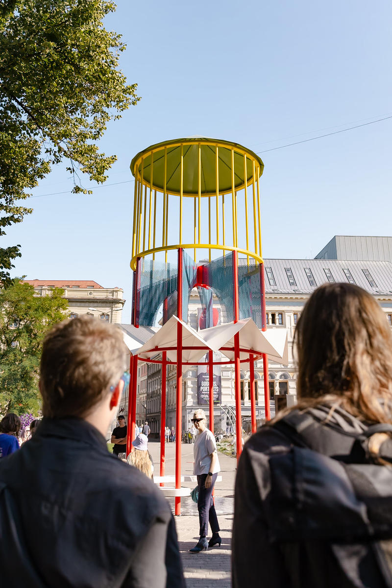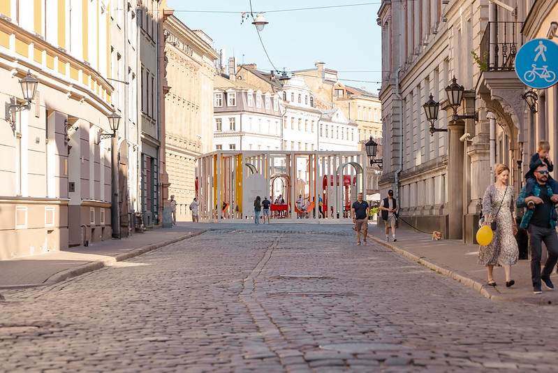 Vietā, kur sastopas septiņas Rīgas ielas, mākslas instalācija aicina cilvēkus no dažādām sabiedrības grupām baudīt un mijiedarboties no jauna atdzīvinātajā publiskajā telpā, tādējādi instalācijas lietotājiem kļūstot par neatņemamu projekta daļu un kolektīvi aizpildot laukumā esošo brīvo telpu.