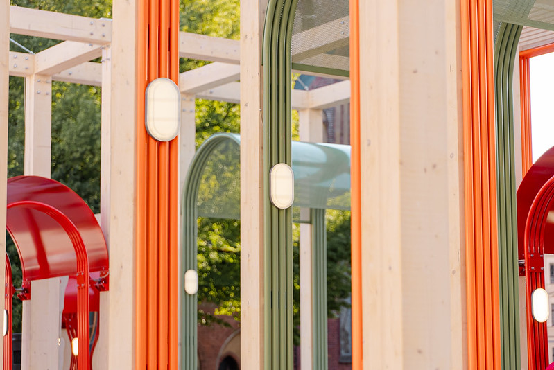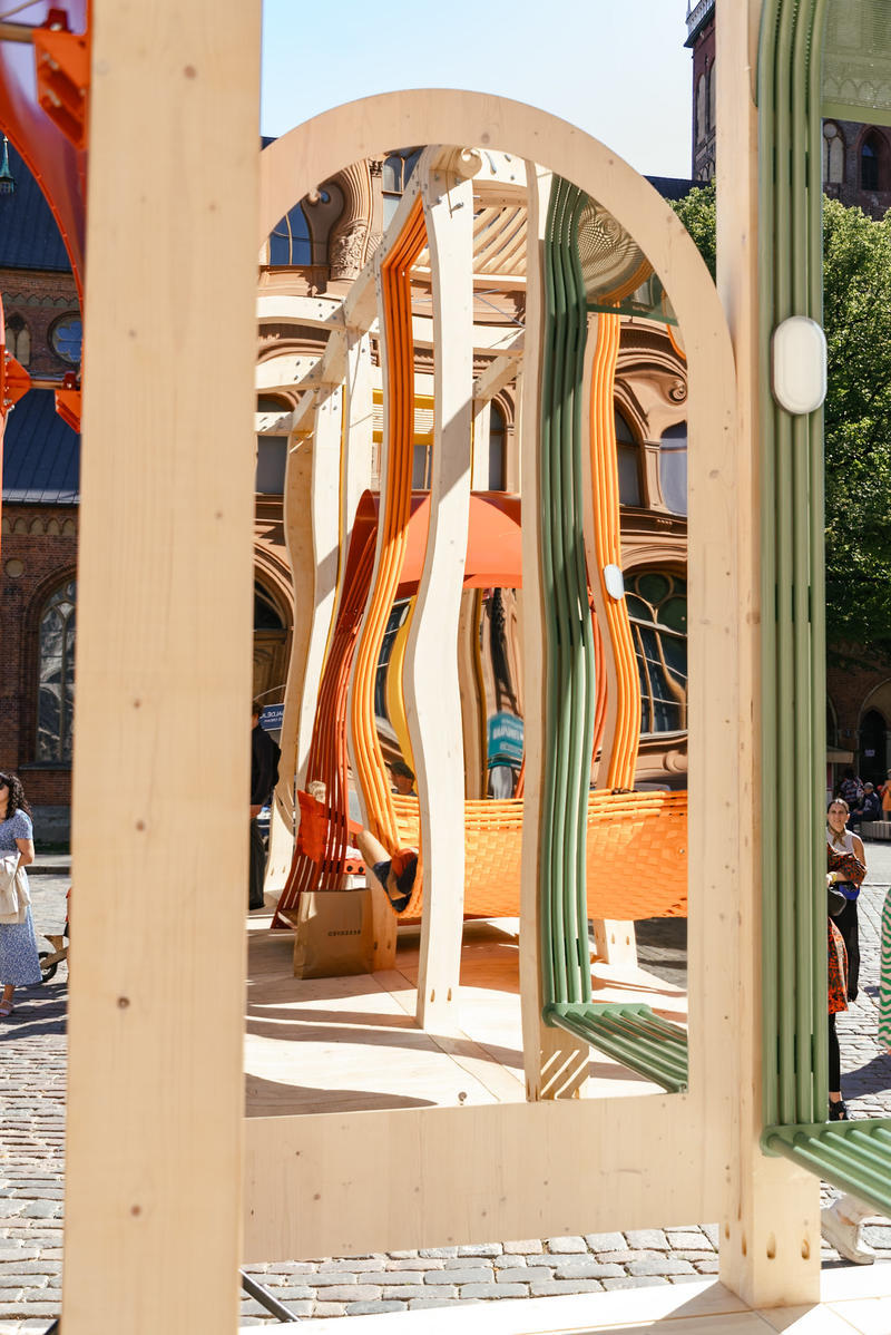 Šis paviljons ir kā dažnedažādu Rīgas arhitektūras atsauču kolāža, kurā atspoguļots eklektiskās pilsētas tēls visā tā daudzveidībā. Tas ir kā tikšanās vieta vai pieturpunkts ceļā, kur pasēdēt un papļāpāt, vērojot Vecrīgas kņadu un baudot ledus karameļu lati. Darba autori ir SIA “Sampling”.