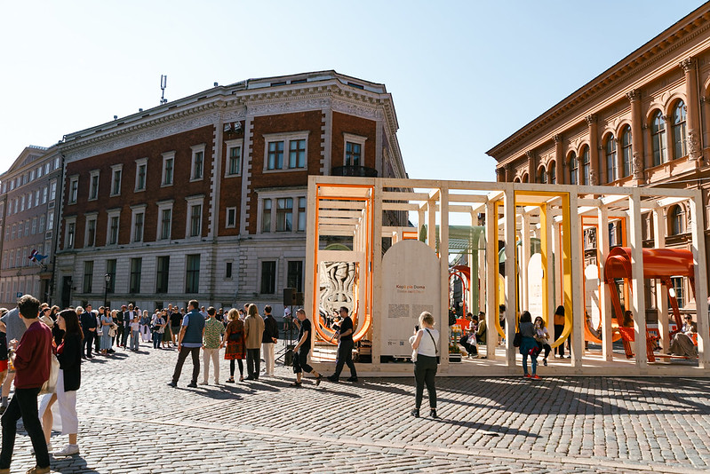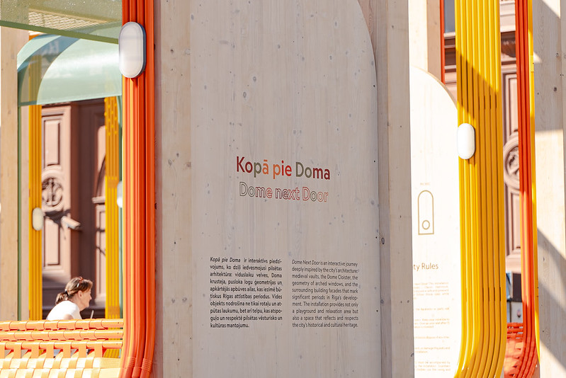 “Kopā pie Doma” ir interaktīvs, apdzīvojams pilsētvides mākslas objekts Rīgas vēsturiskā centra sirdī. Instalācija būs izvietota Doma laukumā un pieejama galvaspilsētas iedzīvotājiem un viesiem sākot no 2. augusta līdz 30. septembrim, ar mērķi radīt draudzīgu sociālās mijiedarbības, līdzāspastāvēšanas un estētiskās pievilcības notikumu vecpilsētas lielākajā laukumā.