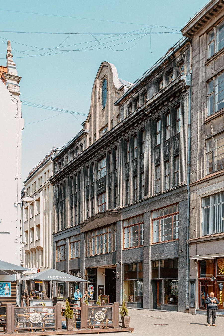 Kaļķu ielā 24 esošais nams ir valsts nozīmes arhitektūras piemineklis un daļa no Rīgas vēsturiskā centra, kas iekļauts Pasaules kultūras mantojuma sarakstā. Šo ēku projektēja arhitekti Herberts Tīmers un Makss Deibners no 1913. līdz 1917.gadam, un tā ir izcils “stateniskā jūgendstila” arhitektūras piemērs ar neoklasicisma elementiem. Ēka ir kalpojusi kā veikalu, biroju, dzīvokļu un kinoteātra vieta, kā arī kazino pēc Pirmā pasaules kara. Lai arī ēka ir vairākkārt pārbūvēta, tās oriģinālais arhitektoniskais veidols ir saglabājies.