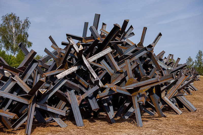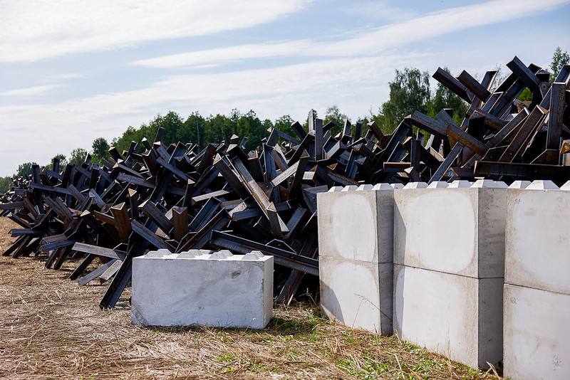 Austrumu robežas stiprināšanai paredzētais finansējums jau tiek apgūts konstrukciju materiālu – betona bloku, prettanku ežu, “pūķu zobu” un HESCO grozu iegādei.