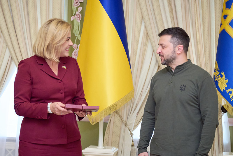 Esot vizītē Ukrainā, Ministru prezidentei Evikai Siliņai ceturtdien, 12.septembrī, piešķirts Ukrainas valsts apbalvojums – Kņazienes Olgas I šķiras ordenis, kuru Ministru prezidentei pasniedza Ukrainas prezidents Volodimirs Zelenskis.