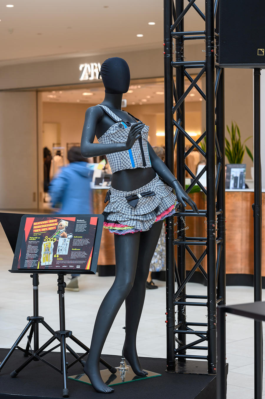 Skatuvei vajag pārspīlējumu – Tērps priekšnesumam “Hey, Hey, Hey”, 2009.gads. Koledžroka stilā veidotais tērps Eirovīzijas nacionālajai atlasei atspoguļo jaunības trakumu, rokenrolu un bezrūpību, un iemieso Aijas Andrejevas māksliniecisko brīvību. Tā tapšanu iedvesmoja gan dziesma “Hey, Hey, Hey”, gan Sindijas Lauperes pop-punk stils. Lai gan sākotnēji daļa komandas pauda bažas, ka tērps ir pārāk īss, dizainere Ilze Patmalniece pārliecināja par pretējo – uz skatuves var atļauties to, ko nevar atļauties dzīvē. “Skatuvei vajag pārspīlējumu, jāatšķiras no skatītāja, un skatītājs to gaida,” ir pārliecināta dizainere.