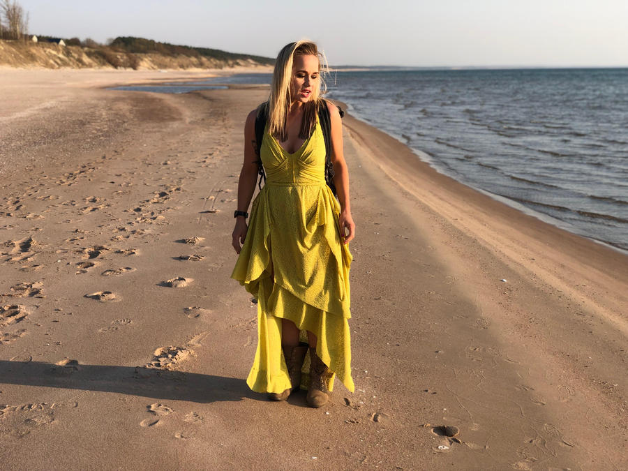 Citāda līgava – Kāzu kleita, 2021.gads. “Es biju pārliecināta, ka nevēlos tradicionālu, baltu “princešu” kleitu, jo tas jau bija piedzīvots. Manai kāzu kleitai bija jābūt nepieradinātai, taču ar klasisku šarmu un vieglumu, kā arī tādai, kuru varētu uzvilkt vēlreiz. Tā kā tās bija manas otrās kāzas, es izvēlējos pasteļtoņus un dabiskus, zemes krāsu akcentus,” saka Aija Andrejeva. Viņas ideju, iedziļinoties katrā detaļā, precīzi īstenoja Kašers, radot trīsdaļīgu tērpu, kas sastāv no satīna “slip dress” kleitas, tilla kleitas ar samta lentēm un cepures.