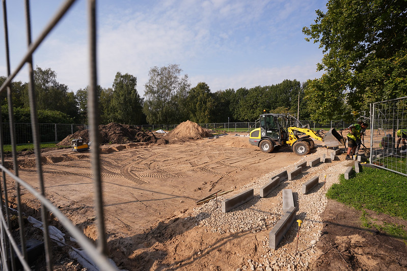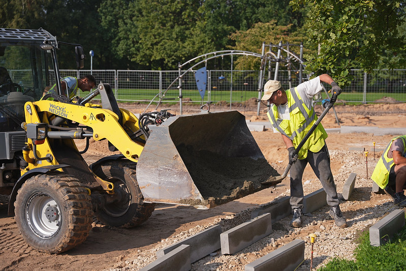 Mājokļu un vides departaments arī turpina atjaunot bērnu rotaļu laukumu Uzvaras parkā starp Slokas, Bāriņu ielu, A. Grīna un Uzvaras bulvāri, pie A. Grīna bulvāra 7.